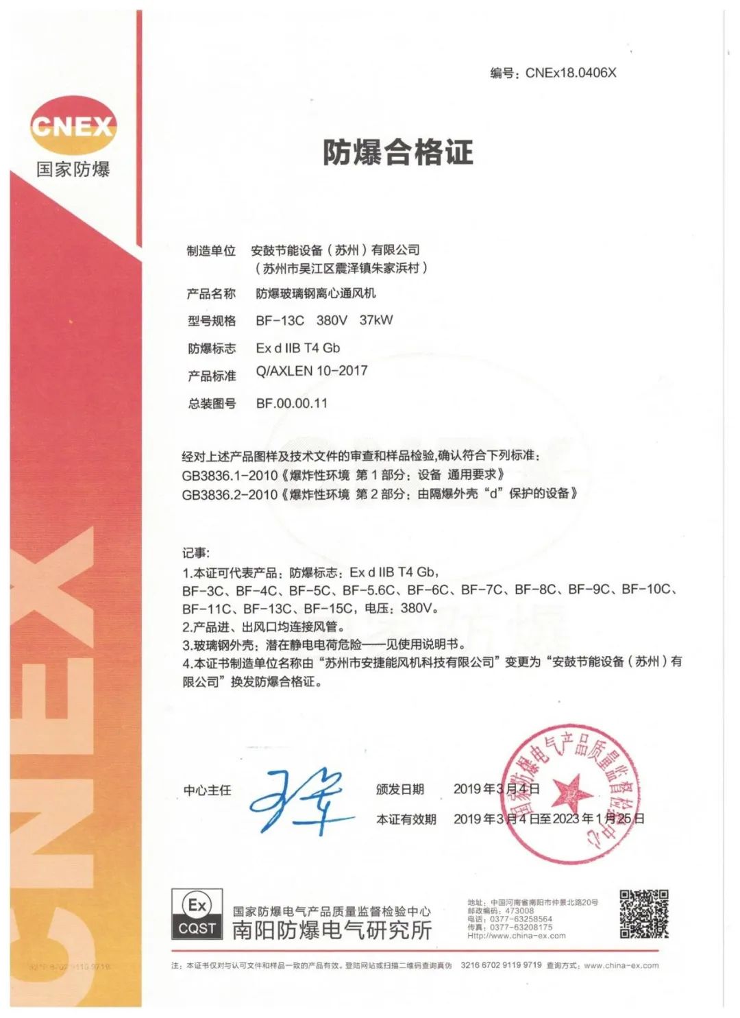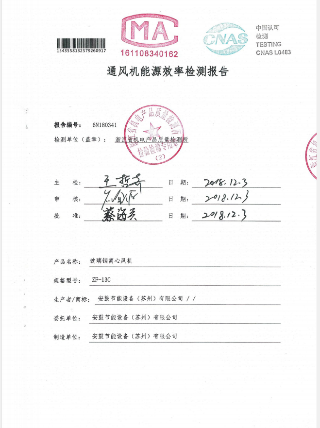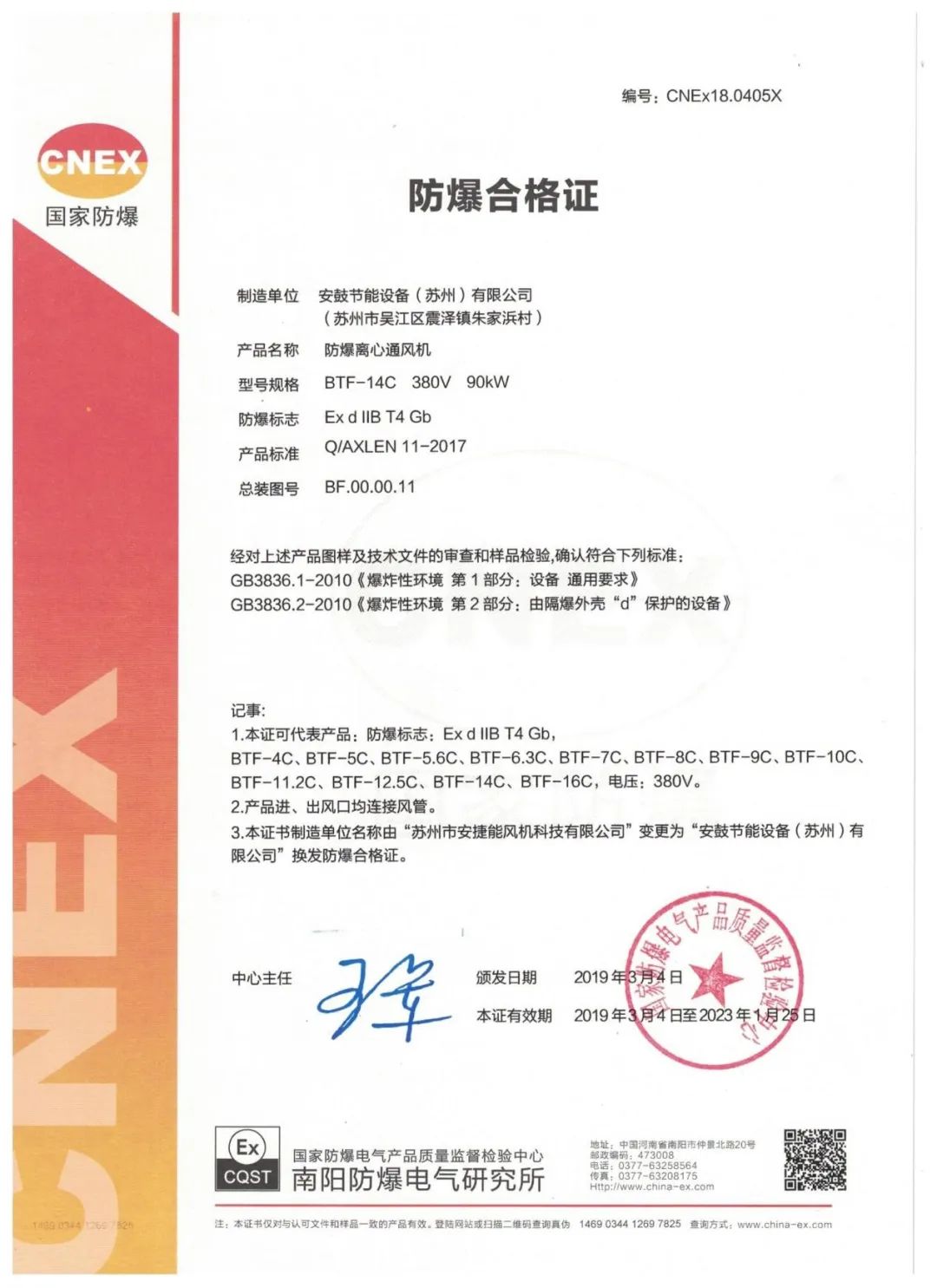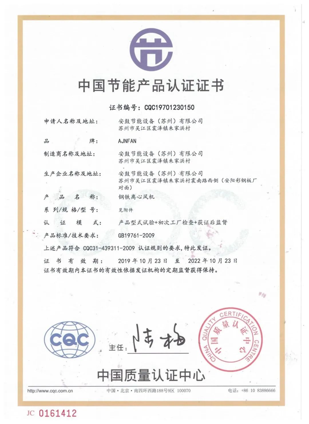 安鼓拥有国家专利二十多项,产品已通过中国节能产品认证、 AMCA等多项认证。