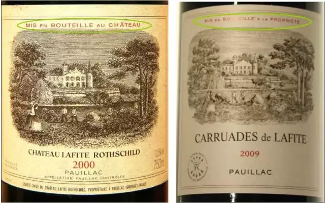 第一,“酒庄装瓶”(Mis en Bouteille au Chateau),通常说明酒庄有自己的葡萄园,其酿造、木桶陈酿和灌装也在自己的葡萄园内完成。在同一生产商所有的葡萄酒中,由酒庄装瓶的葡萄酒一般品质较高。在波尔多,只有酒庄的正牌酒才会使用这种字样。第二,“酒商装瓶”(Mis en Bouteille a la Propriete),即我们所知的酒商酒。酒商酒有可能是某些葡萄酒贸易公司从别处收购葡萄或散装葡萄酒自己进行生产调配并装瓶的,质量和风格较为稳定可靠;也可能是酒庄把产权卖给了控股公司(即酒商),而酒庄实质上属于该公司。在波尔多,一些副牌酒的酒标上通常也会标示类似字样。总之,由酒商装瓶的葡萄酒,可能是一款品质一般的葡萄酒,也有可能是由名庄生产的品质不错的副牌酒。第三,“由……装瓶”(Mis en Bouteille par),这种写法后面一般直接跟着一个具体地址或者邮政编码,指在某某地址内装瓶。此酒的产地和风味不受葡萄酒相关法律法规的约束,这种葡萄酒可以产自任何地方、采用任何葡萄酿造或由任何拥有者装瓶出售。一般来讲(不是绝对),这种葡萄酒较为低端。“Grand Vin”直接翻译过来就是“优质葡萄酒”。因为 Grand Vin 跟 Grand Cru(勃艮第 Bourgogne 中最高等级的特级葡萄园)和 Grand Cru Classe 有些相似,有些人会误以为 Grand Vin 是多么了不起的名酒呢。其实 Grand Vin 只是指某个酒庄的优质葡萄酒,相比于该酒庄的其他葡萄酒而言,带有这一字样的葡萄酒确实是品质最好的。不过,任何酒庄都可以选择使用这一字样,对不同酒庄的葡萄酒之间的纵向比较是没有任何指导意义的。