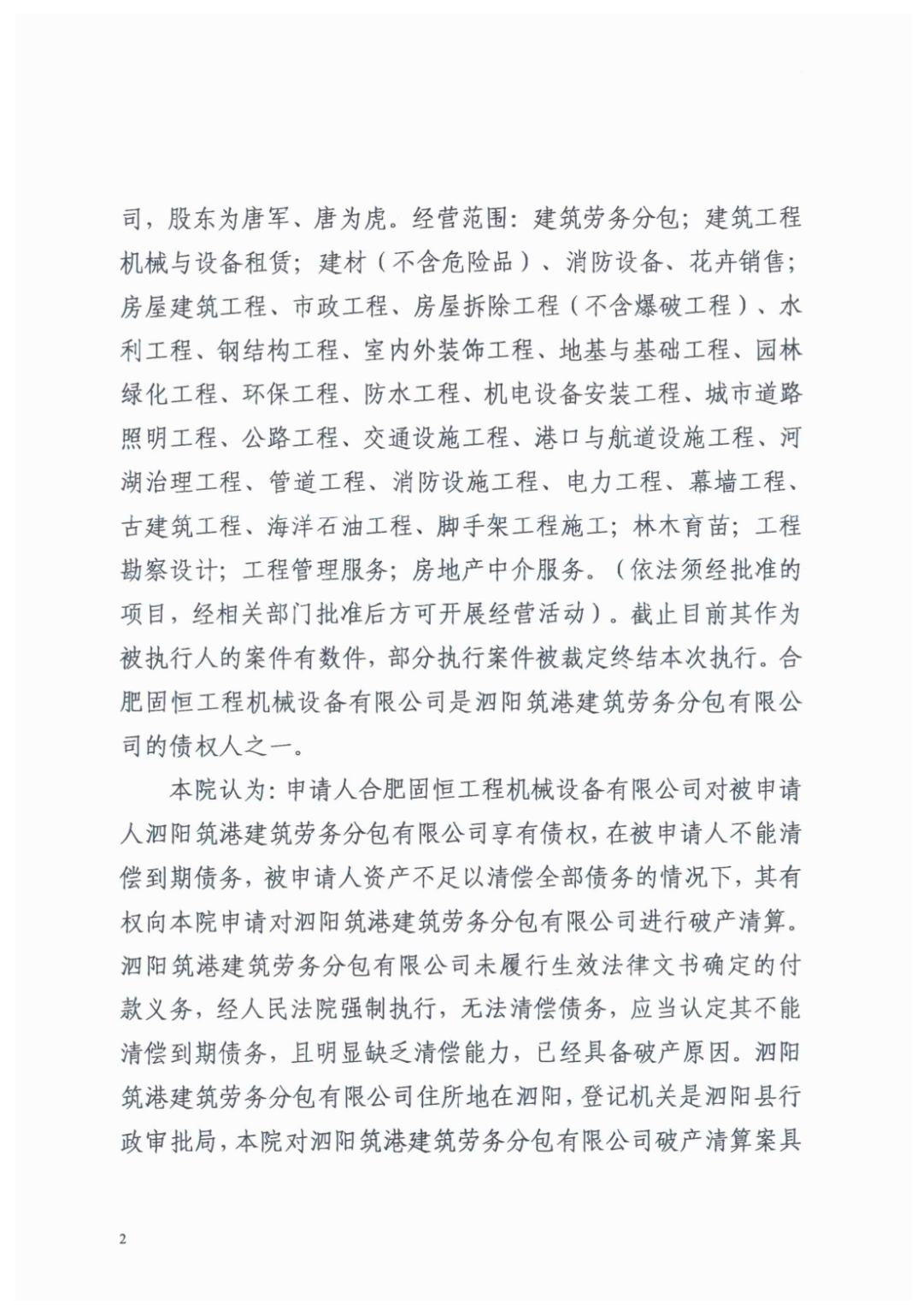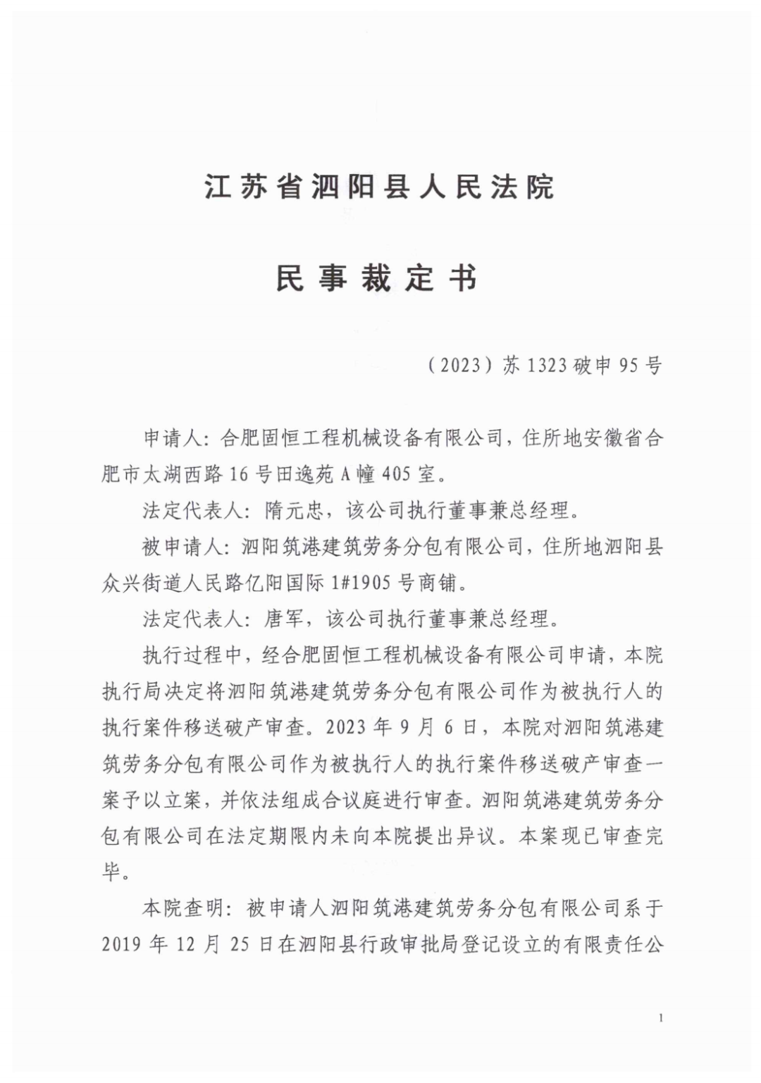 泗阳筑港建筑劳务分包有限公司管理人