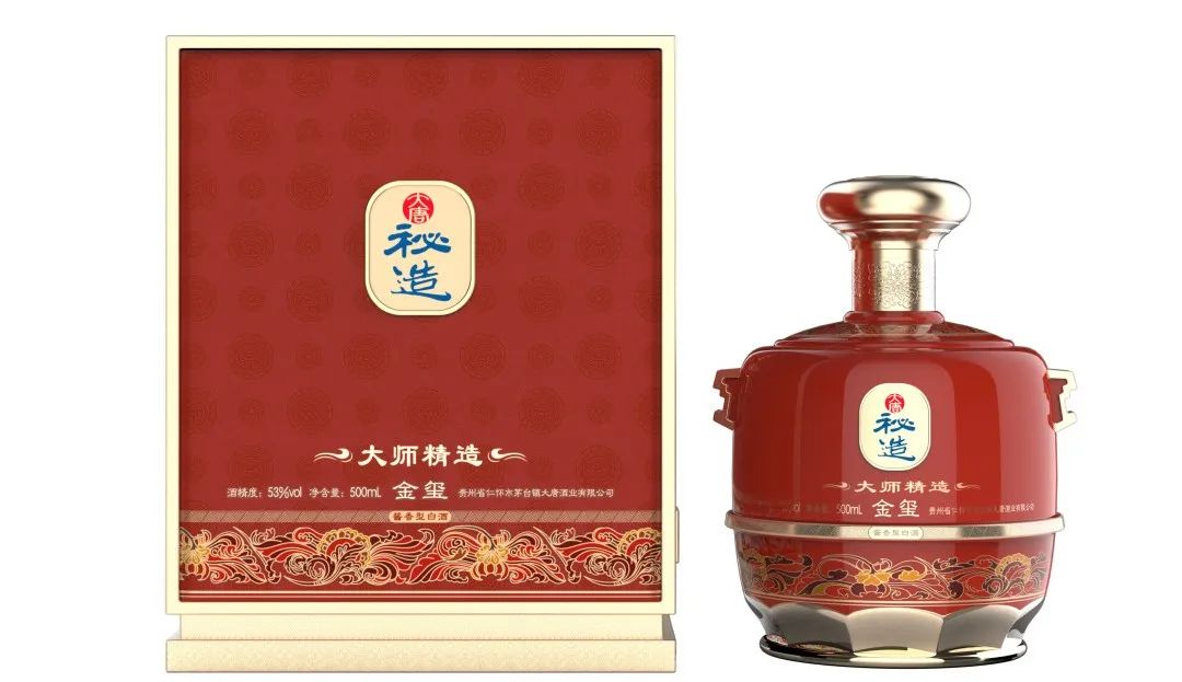 大唐酒业深谙市场以及消费者对工匠级酱酒的消费需求,推出了大唐秘造·大师精造系列酱酒。大师精造由被称为“中国酱酒工艺活化石”的国家级酿酒大师曹大明和国家一级品酒师罗吉洪进行品质把控。曹大明自1975年起一直从事酱酒生产酿造工作,迄今47年,曹大明几十年如一日对酱酒酿造工艺的执着与敬畏,保障了大师精造酱香酒的品质。同样扎根酱酒行业从事品评勾调工作20余年的罗吉洪对品质的极致追求,成就了大师精造醇厚、正宗的酱香风味特征。在酿造工艺上,大唐酒业严格按照古法酱香白酒“12987”的传统工艺,从选料到出酒层层把关,确保每一滴酱香酒的品质。在酒体上,主体基酒选用10年以上的老酒,酿造出“酱香突出,优雅细腻,酒体醇厚,回味悠长,空杯留香持久”的独特口感,为消费者带来更加尊贵饮用体验。随着消费结构不断升级,高端白酒消费者不单单想要获得感官方面的享受,更需要满足更高层次的精神需求和社交需求,而文化内涵则成为高端品牌与众不同的标签和满足消费者高阶需求的核心指标。大师精造以盛唐文化为背景,以大唐元素为主线,在设计上巧妙的将盛唐文化与包装工艺相结合,再现千年盛唐文化。大师精造·金顶以国画常见的螺青色为主色调,瓶盖融入唐朝建筑特色建筑元素,象征着至尊无上,瓶身整体造型与“酒珵”接近,通体圆润,瓶底以中国古代的四圣兽青龙、白虎、朱雀和玄武作为装饰,象征着平安和祥瑞,同时也极具文化感; 大师精造·金玺以中国传统色洛神珠为主色调,瓶身莲花底座的设计寓意着富贵连连,酒盒造型则借鉴了传国玉玺的样式,中正大气,象征权威,代表着尊贵专享,盒身暗纹则采用唐代流行的宝相花元素,寓意吉祥、如意。在消费升级,以及中高端酱酒消费持续升温催化的背景下,大众酱酒消费需求开始空前凸显,“大众酱香时代”正在加速到来。