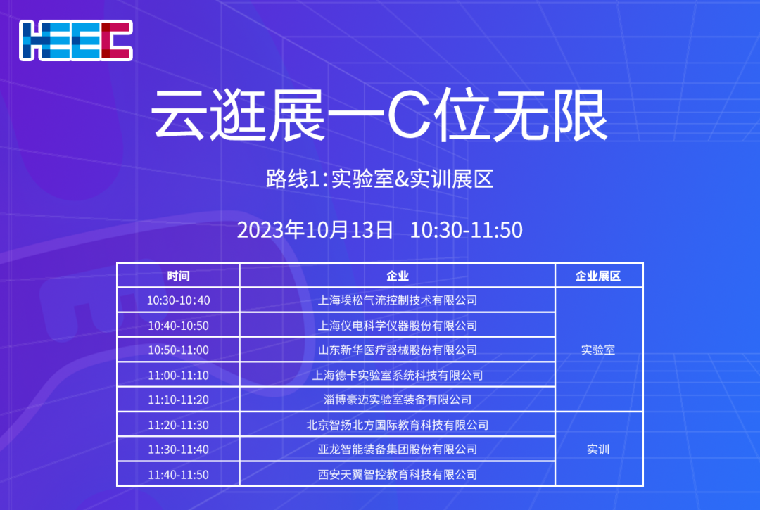 本届高博会将继续推出“云逛展—C位无限”直播活动,以线上直播的形式,带领观众第一时间展会现场,全方位展示高博会参展企业带来的产品、技术以及解决方案。直播活动将重点围绕实验室及科研仪器设备类、实训及机电类和信息化及智慧教育类展区,通过13日上午、下午共计3场直播路线,为参展企业和观众搭建更为实时、全面的线上展示平台。