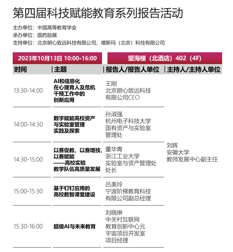 第四届科技赋能教育系列报告活动作为高博会品牌活动之一,本届报告活动将围绕“AI时代的高等教育”主题,汇聚全国知名高校学者与行业专家,就AI人工智能对教学方法的优化、在线教育平台建设、学生综合素质的智能化评估与认证、教师的培训与发展,以及推动跨学科研究合作等议题进行主题分享。通过不同视角的思想碰撞与经验交流,共同探讨人工智能时代下教育变革的方向和目标,总结智能时代教育变革规律,共同塑造有益学生成长、健康、韧性、可持续的未来教育生态。