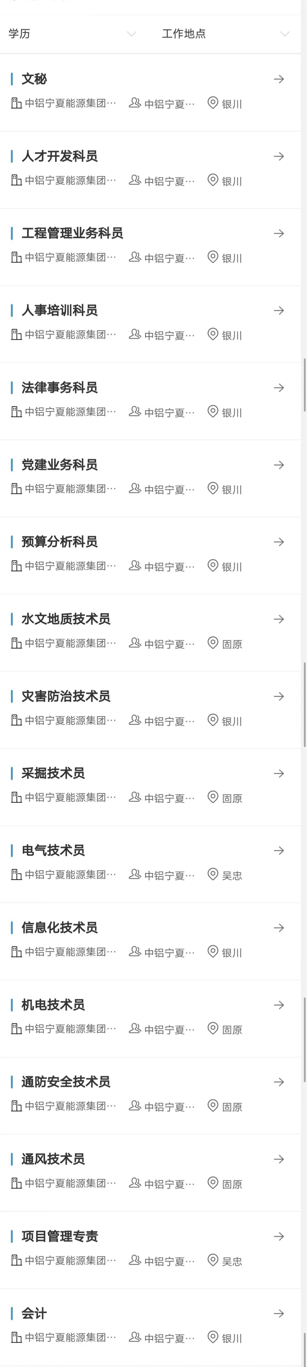 单位简介:中铝宁夏能源集团有限公司(原宁夏发电集团有限责任公司)成立于2003年6月26日,2013年2月3日由中国铝业战略重组。公司注册资本50.26亿元,股东及股权比例为:中国铝业股份有限公司70.82%、宁夏惠民投融资有限公司17.96%、北京能源集团有限责任公司5.66%、宁夏电力投资集团有限公司5.56%。现有控参股公司19家,其中控股的银星能源股份公司为A股上市公司(股票代码:000862)。截至目前,公司有劳动合同制职工6200余人。