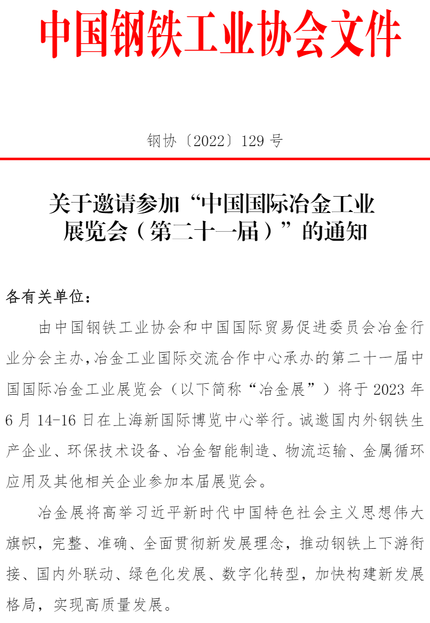 关于邀请参加“中国国际冶金工业展览会(第二十一届)”的通知