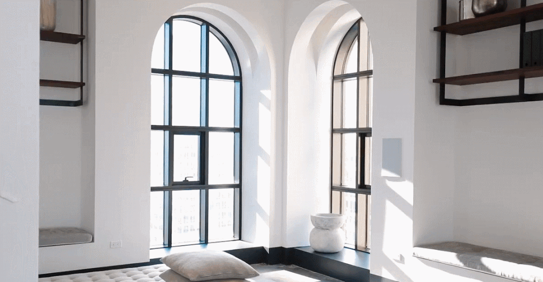 Movie oil painting texture of the arched window, curved lines and natural light perfect fusion, delicate curves in the air to draw a beautiful arc.