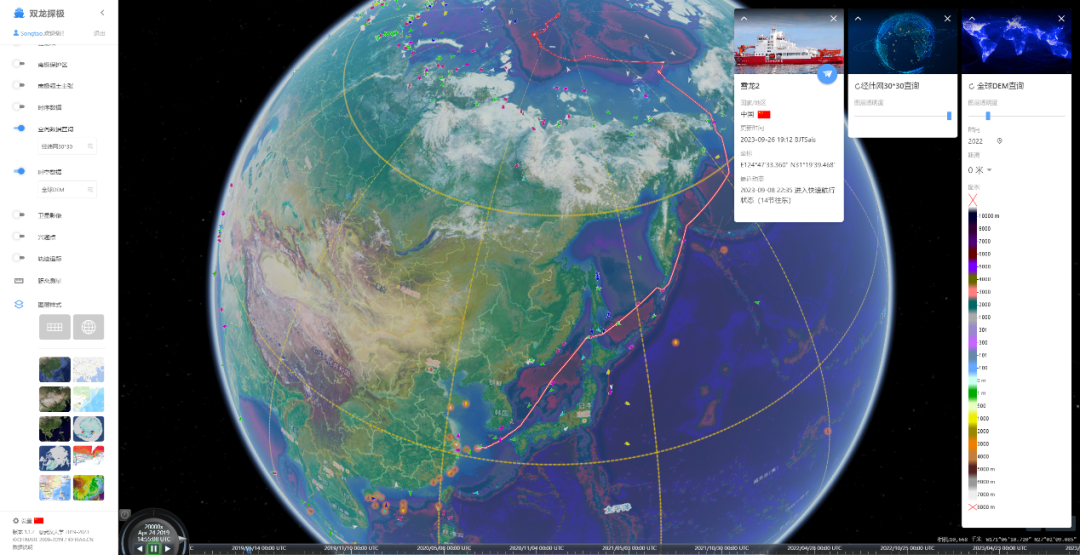 北京时间2023年9月14日凌晨5时33分,“雪龙2”号极地科考破冰船向南驶出北极圈,离开北极地区,最终“雪龙2”号于9月27日返回位于上海的国内基地码头,结束本航次的全部行程。(图片来源:武汉大学中国南极测绘研究中心)