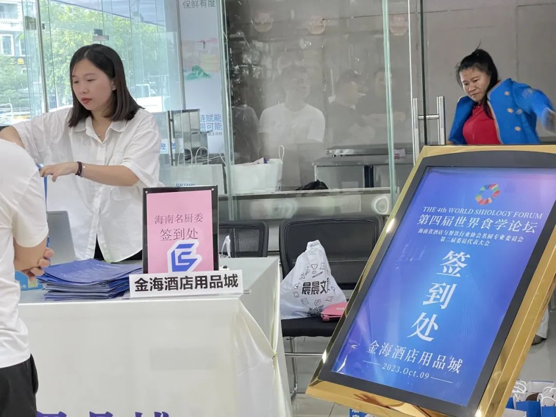 此次海南省酒店与餐饮行业协会名厨专业委员会第二届委员代表大会签到处设立在海南金海酒店用品城。