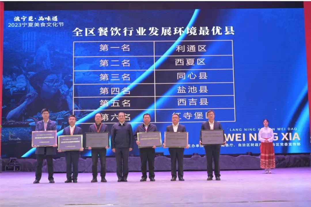 10月6日,由自治区商务厅、财政厅、党委宣传部主办的“浪宁夏·品味道”2023宁夏美食文化节闭幕式暨颁奖典礼在银川市举行。活动现场公布了2023宁夏美食文化节系列评选活动评选结果,利通区荣获“宁夏餐饮行业发展环境最优县”第一名。