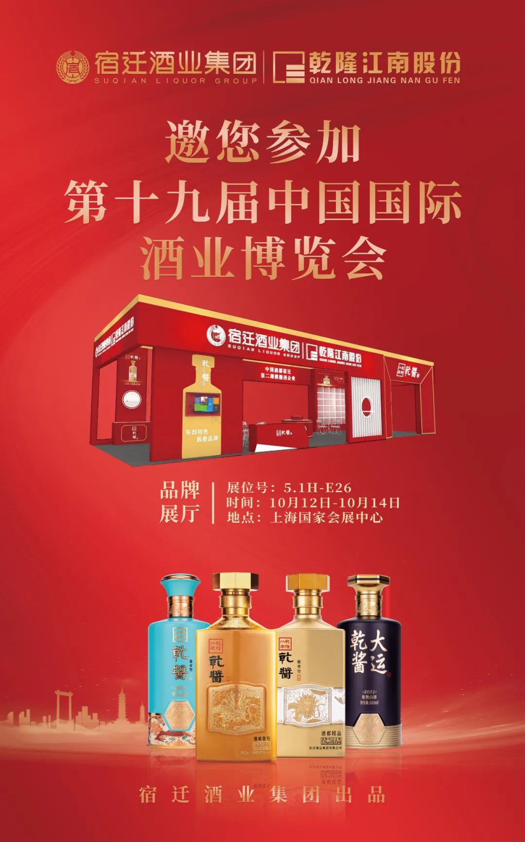 宿迁酒业集团乾隆江南股份将携带核心系列产品亮相5.1H-E26展位。与来自全球的名酒共享荣耀,寻找新的增长和机遇,共创酒类发展新辉煌。