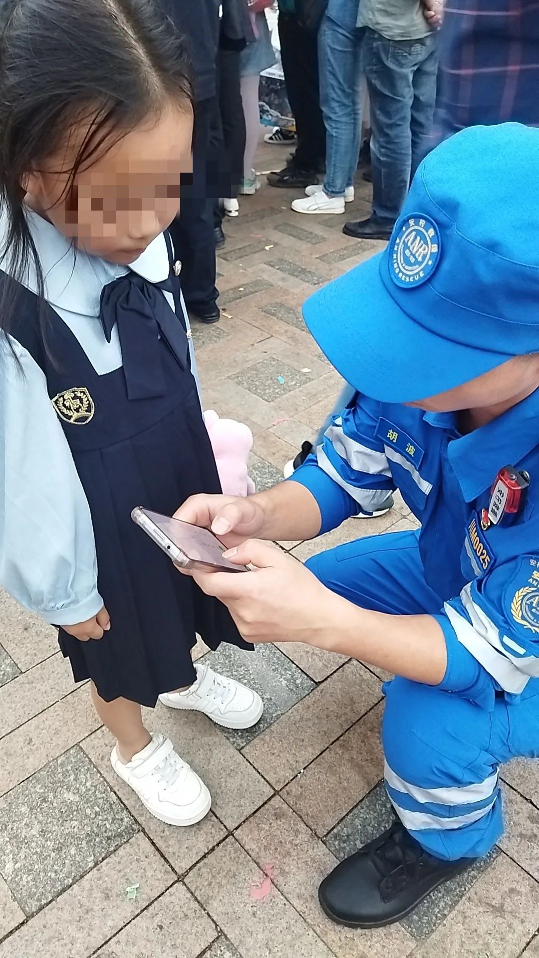 10月4日下午五点过,再次出现小女孩与家长走散的情况,安柠救援队的队员通过努力,很快找到小女孩的家人并将其交给其家人。