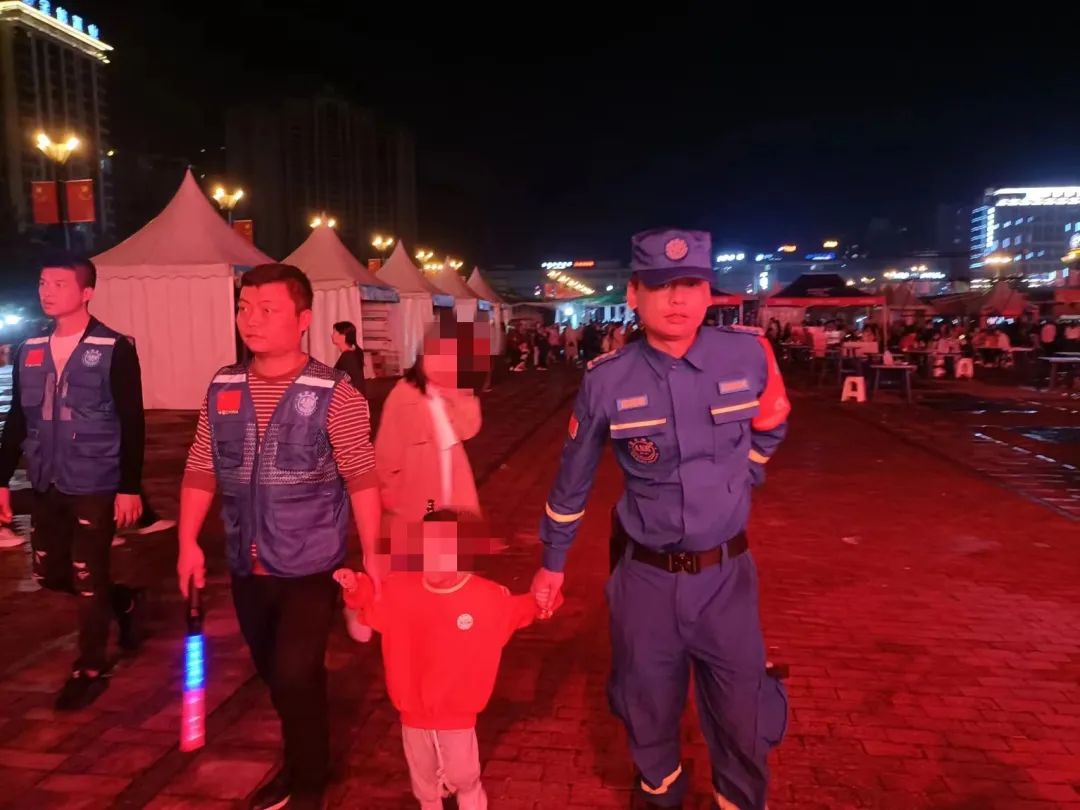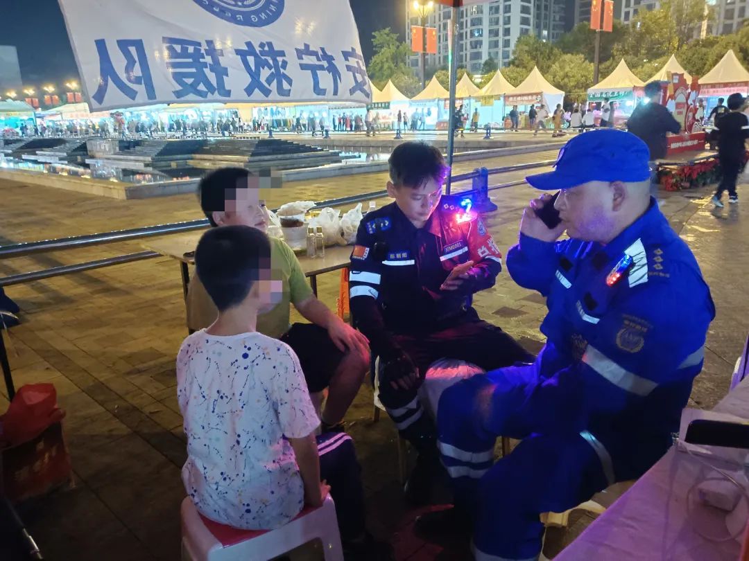 10月3日晚,再次出现小孩与家长走散的情况,队员们积极配合相关部门,及时寻找小孩家属,最终都成功找到了走散的家长。