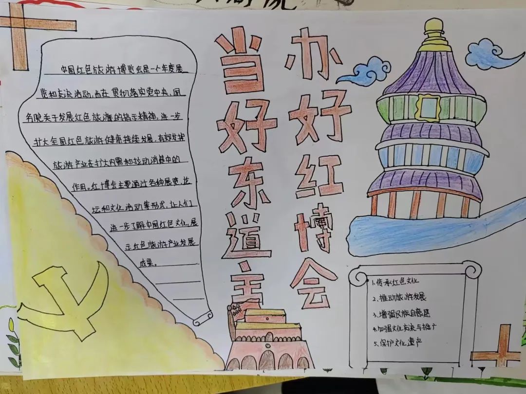 为了让学生增进对红博会的了解,营造红博会的浓厚氛围,我校语文组开展了以“红博会”为主题的手抄报评比活动。