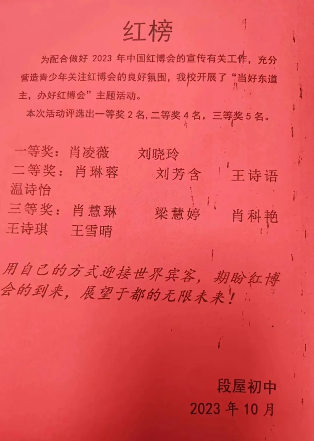 段屋初中语文组举行“当好东道主,办好红博会”手抄报比赛