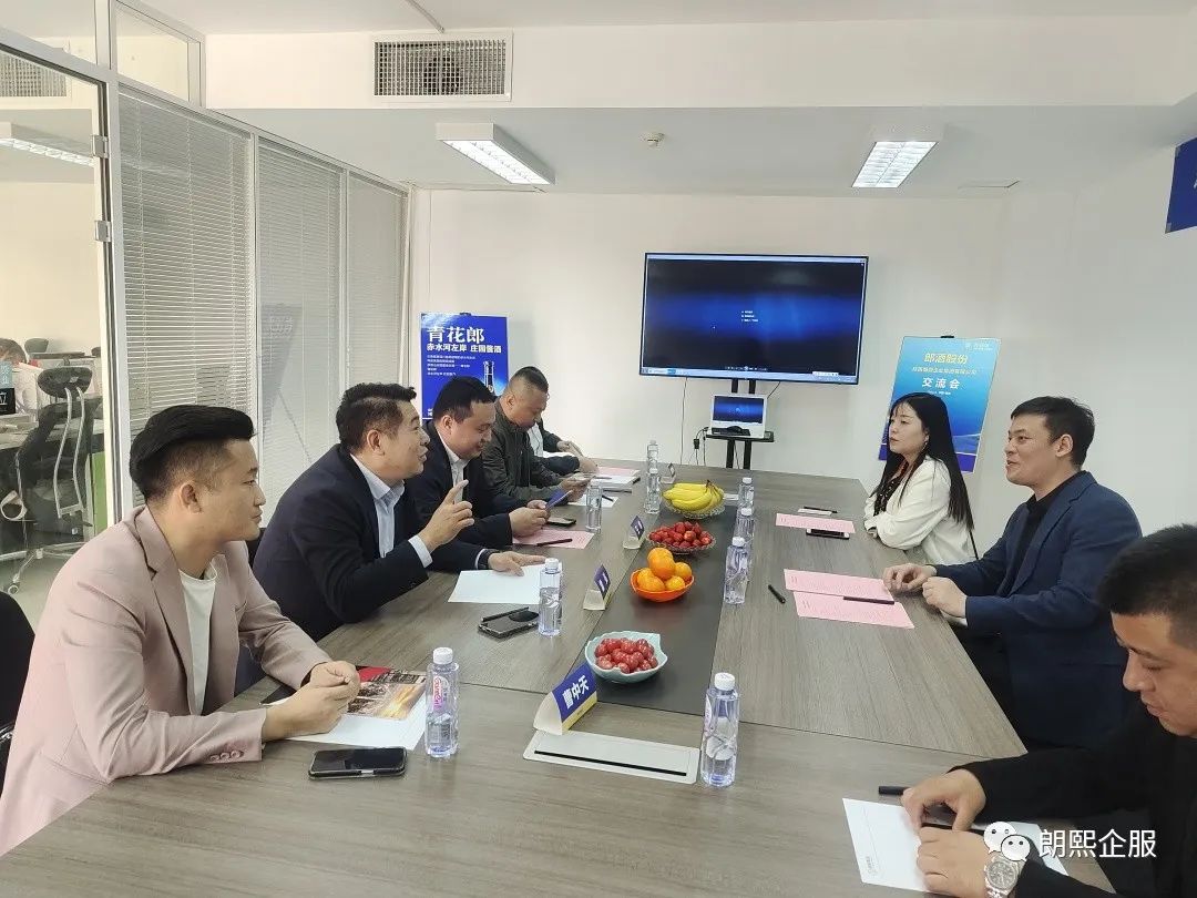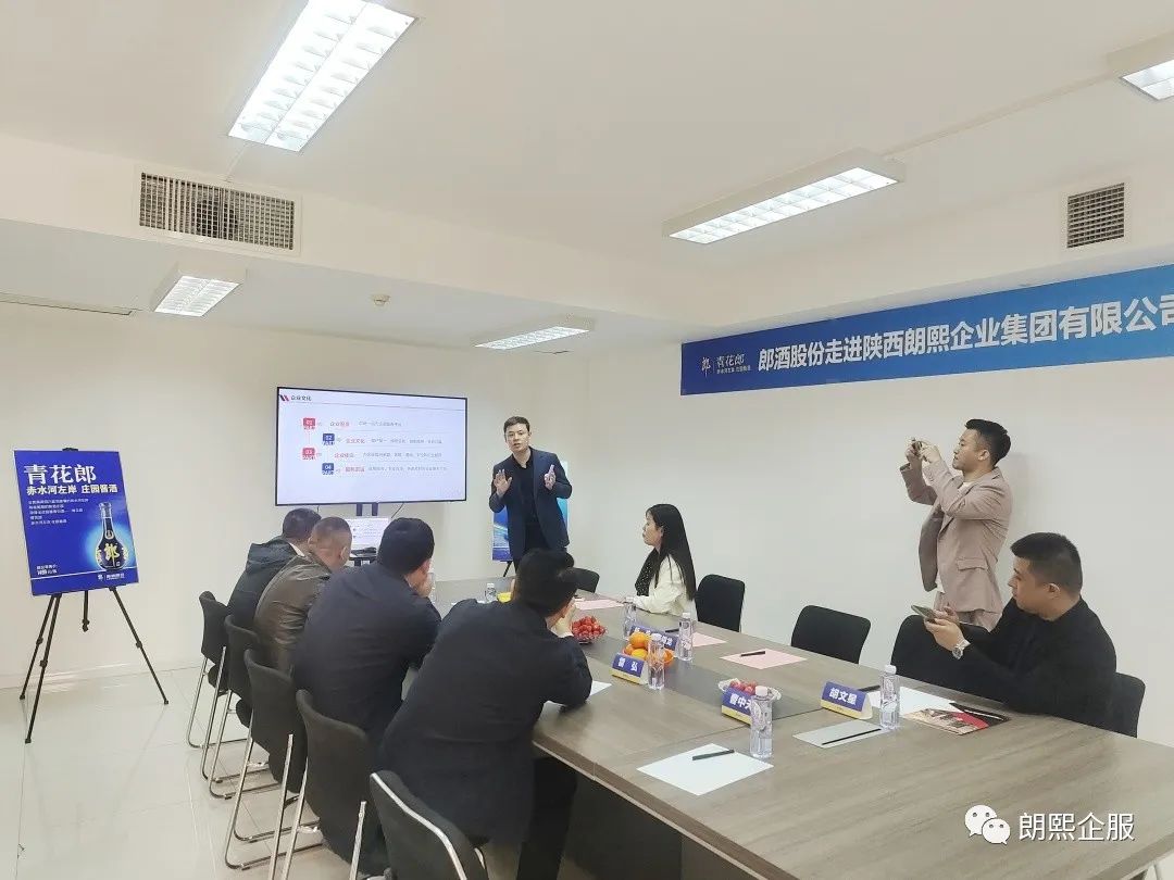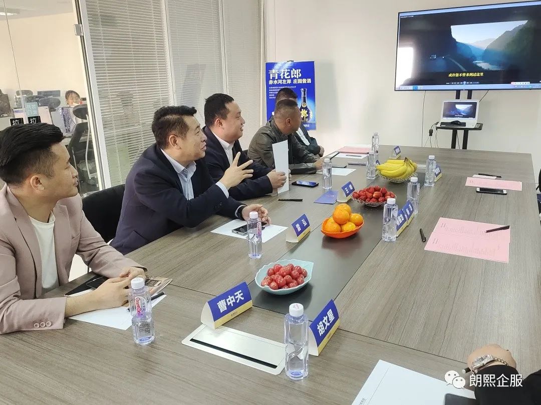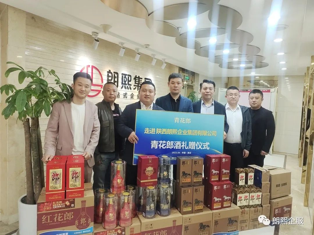 2023年4月12日上午郎酒股份青花郎陕西办总经理王峰先生、西安业务经理郭劲松先生、陕西骥鹏实业总经理雷弘先生、团购经理曹中天先生、青花郎高新店合伙人胡文星先生、青花郎高新店合伙人王炳杰先生一行莅临我司交流走访。