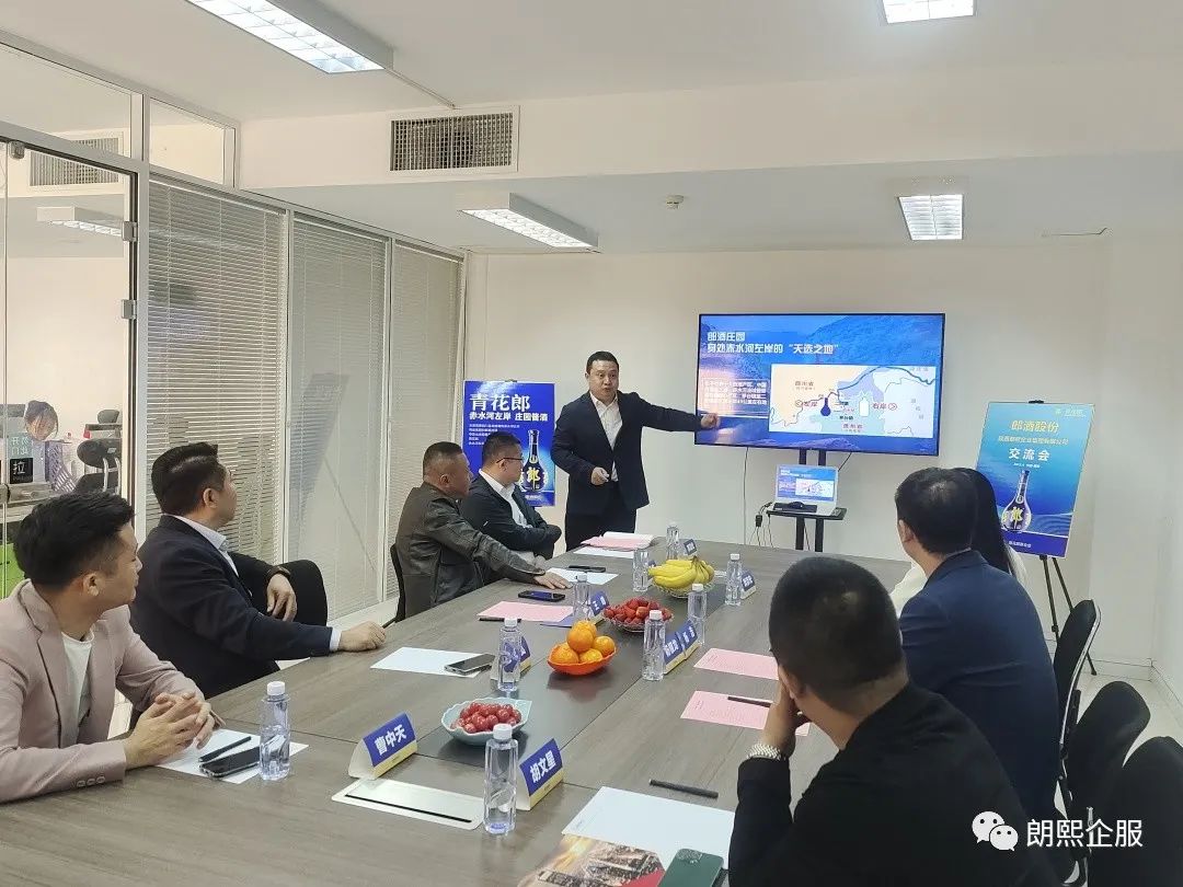 会议中,朗熙集团董事长杨浩杨总对郎酒股份王总、雷总等一行的到来表示热烈的欢迎,并向大家介绍了朗熙集团的发展历程、业务范围、集团规模、企业文化等情况。