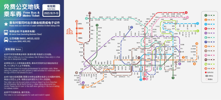 主办方在开展期间特别为前来展会的参展商和观众提供免费地铁乘车券,数量有限,每人每天限领两张,请至展馆外南登陆大厅/南广场入口展会观众登记柜台和展馆内客户服务中心凭借参观证免费领取。
