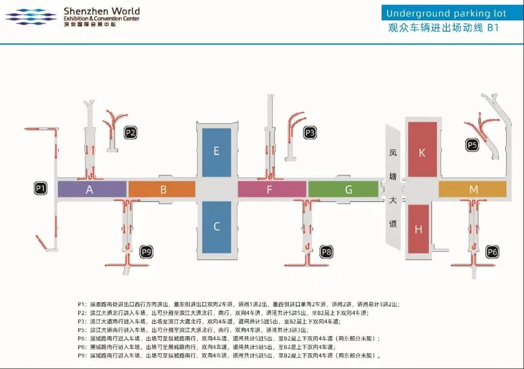 2)沿江高速S3(国际会展中心出口),经由国展立交-凤塘大道-滨江大道从展城路从P1停车口入;停好车后根据指引从C区电梯上南登陆大厅;