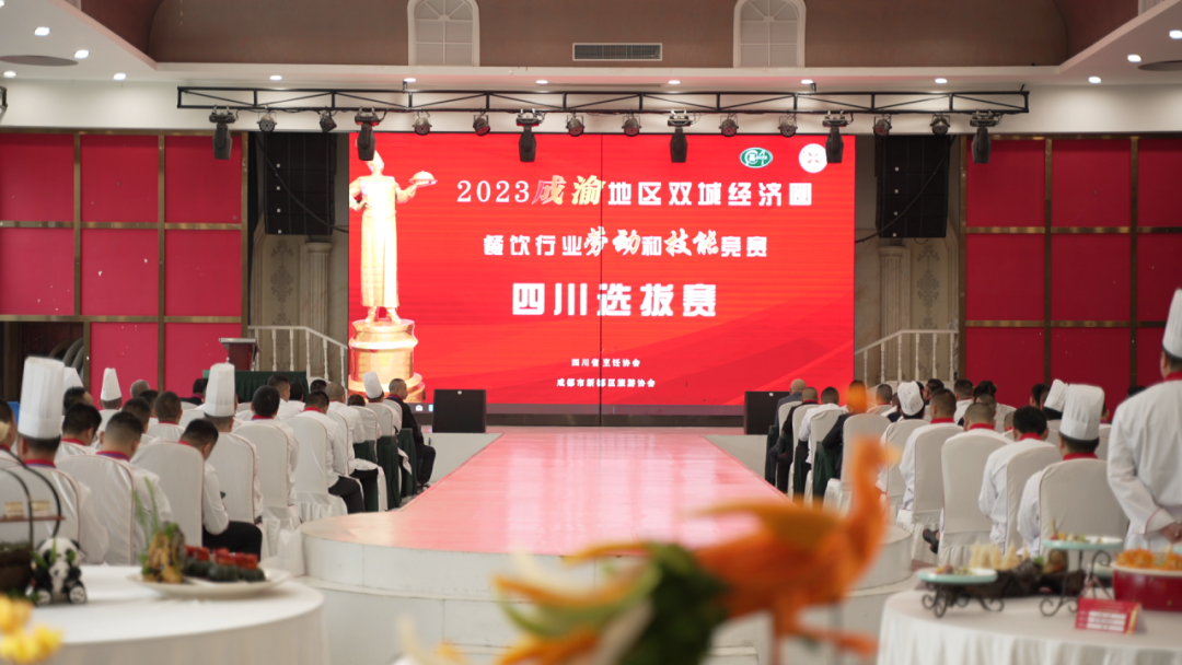 为贯彻落实党中央关于推动成渝地区双城经济圈建设战略部署,弘扬劳模精神、劳动精神、工匠精神,选拔“成渝地区双城经济圈第三届餐饮行业劳动和技能竞赛”四川选手,2023年10月9日,由四川省烹饪协会、成都市新都区旅游协会和重庆市餐饮行业协会联合承办的“成渝地区双城经济圈第三届餐饮行业劳动和技能竞赛四川选拔赛”在成都市新都区锦和宴美食文创园天和厅成功举行。