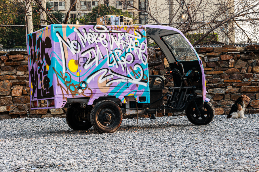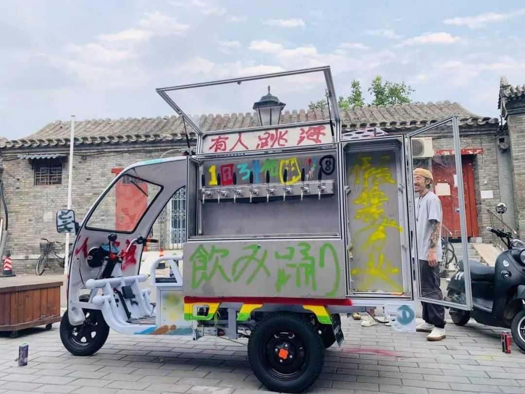 如果你曾在村里(跳海village店)看到过一辆半封闭的箱式三轮车,你可能会从它身上的灰尘猜到它正处于待业的半退役状态,而你很难从它身上的颜料里想象出,这辆生啤车有趣的前半生和它见过的风景——