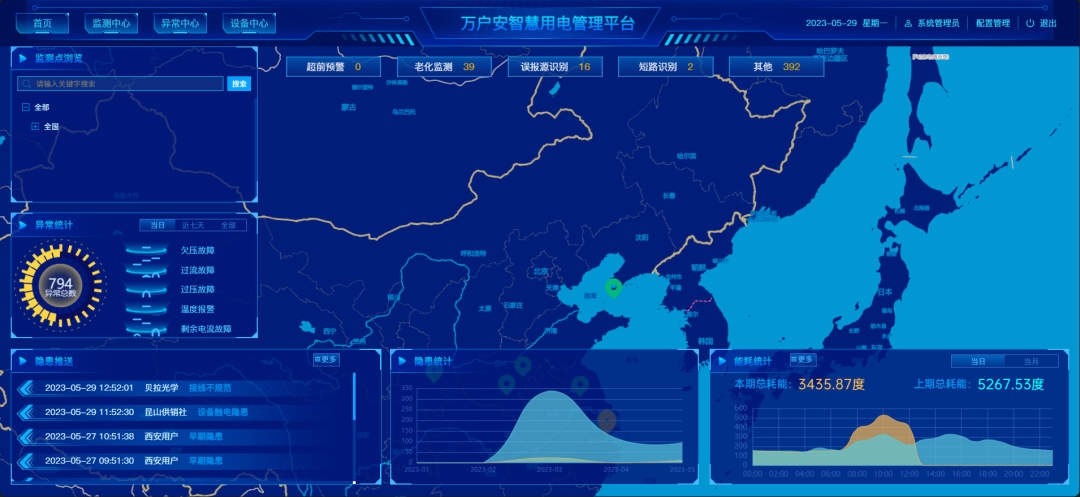 通过后台分析,一旦有参数异常,立刻推出隐患告警信息,实现安全用电、智慧用电