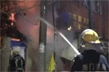 2015年12月30日,南通海门市东风商城后面的一家烧烤店突然起火。由于现场无人自救,当消防人员赶到现场时,火势呈漫延趋势。消防人员用水枪阻止漫延,一边破拆卷闸门,打击内部火势,直至完全扑灭。