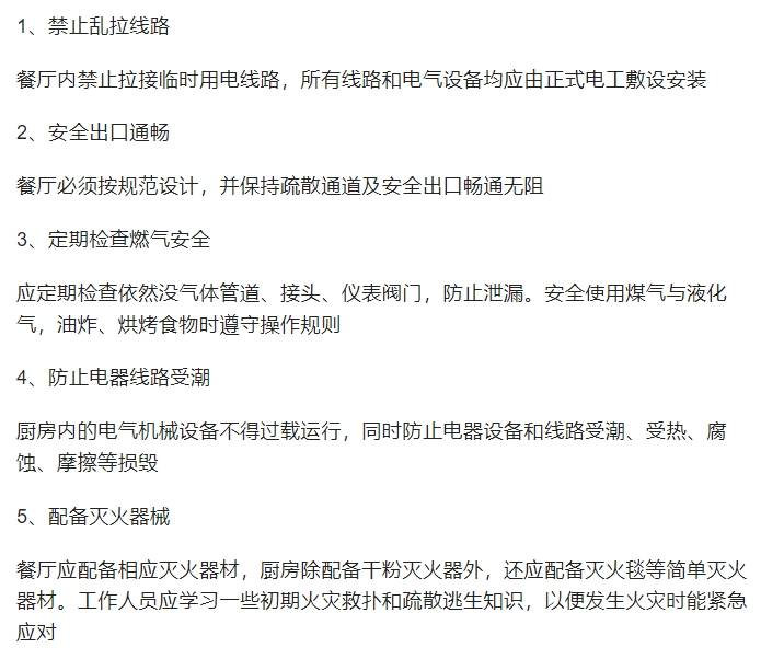 餐饮场所防火措施有: