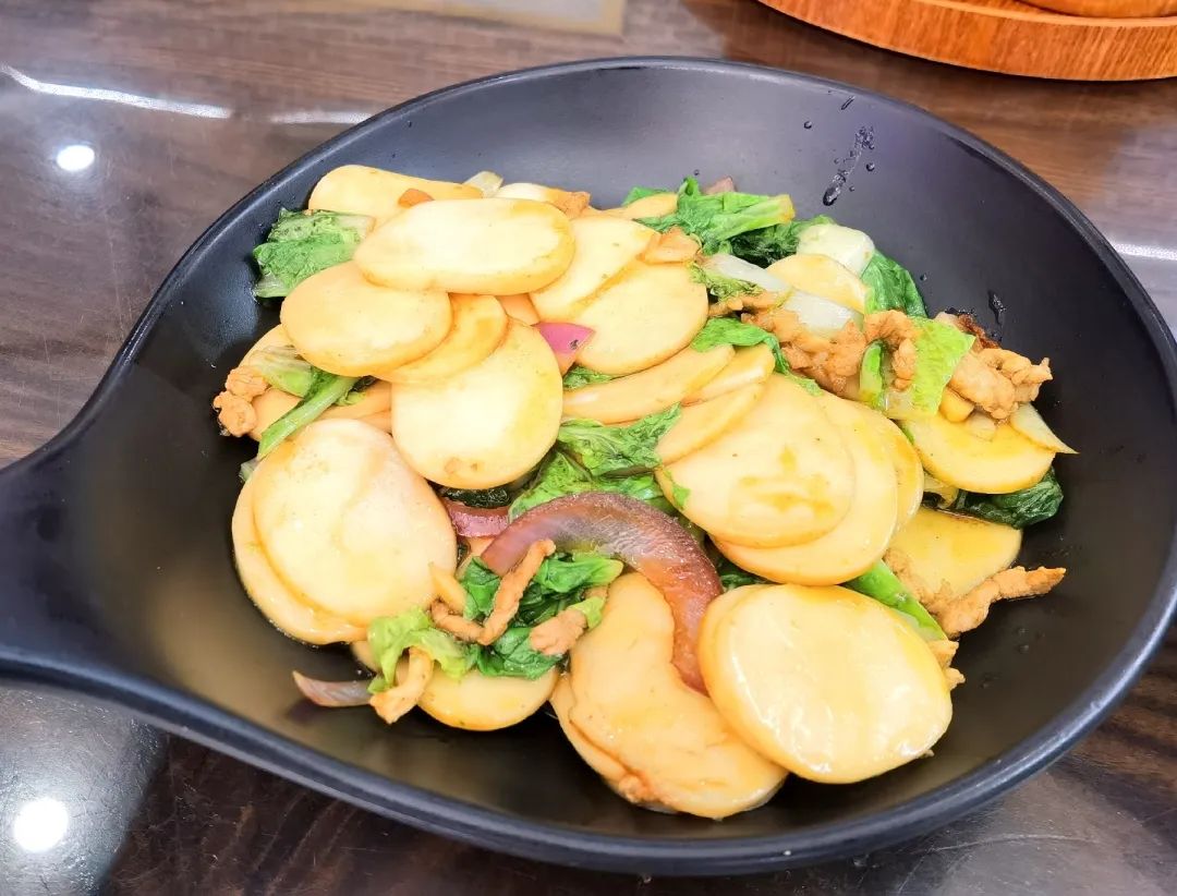 所以,一盘青菜肉丝炒年糕,很快就出炉了。