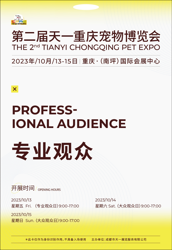 不属于专业观众范畴:不从事宠物行业相关即非专业观众~大家可以关注“嗨翻宠博会”公众号进行购票。