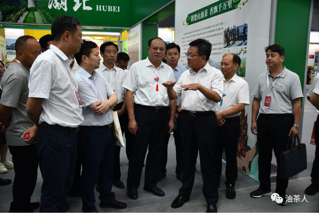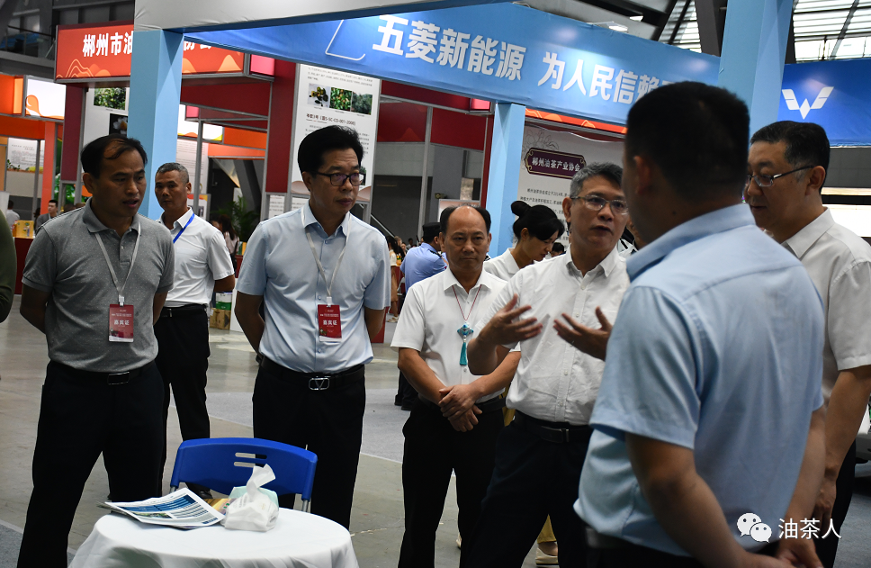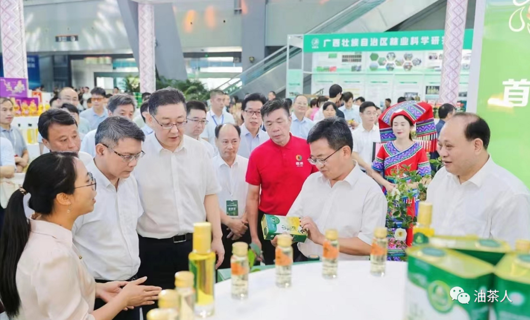 开幕式结束后,中国林业产业联合会木本油料分会、柳州市林业和园林局、广西油茶产业协会、广西山茶油产业品牌联合会、广西壮族自治区林业局、柳州市人民政府等单位领导巡展,对本次博览会上的各省展场、茶油品牌企业、油茶良种种苗、茶油加工机械设备以及茶油美食体验等展会各个环节进行巡视调研,广西梧花茶油科技公司董事长汪升荣先生全程陪同。