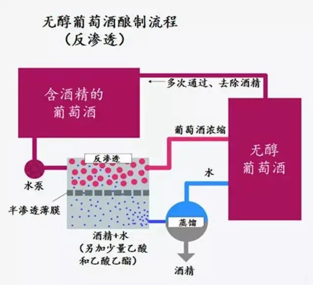 另一种分离葡萄酒的方法是在分子水平上分裂分子,以便在反渗透过程中将这些元素重新混合在一起之前去除酒精。