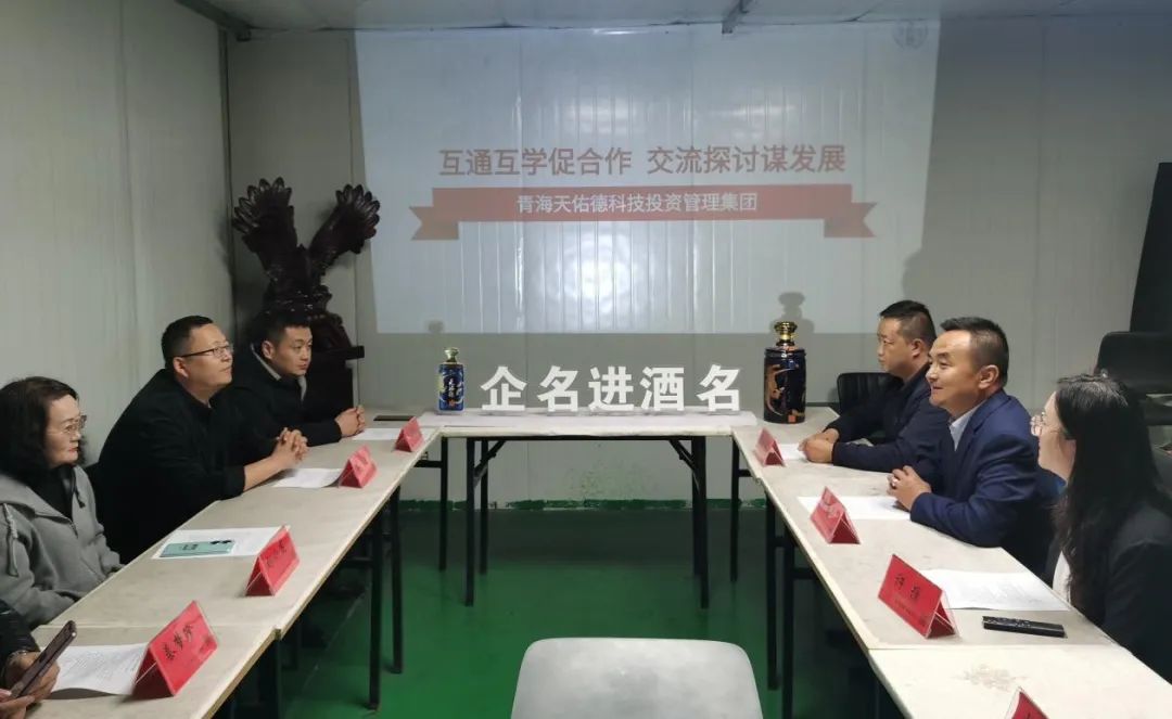 10月11日,天佑德青稞酒公司走进青海冠锐玻璃节能科技有限公司,开展以“互通互学促合作 交流探讨谋发展”为主题的交流活动。青海冠锐玻璃节能科技有限公司副总经理秦宇,主任赵明丞,财务总监刘小霞,副主任秦梦珍;天佑德青稞酒公司营销中心社会关系运营组组长蒋柏山,高端酒业务部业务经理柳永强,团购经销商胡路伟等参加此次活动。