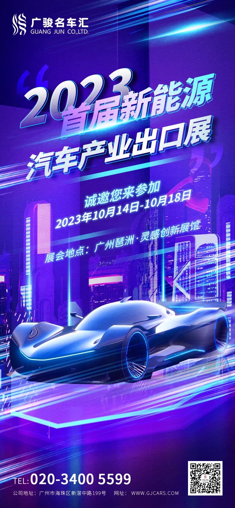 2023首届新能源汽车产业出口展览会将于10月14-18日在广州琶洲举办。广骏名车汇诚邀您到广州琶洲灵感创新展馆1A13参加首届新能源汽车产业出口展。