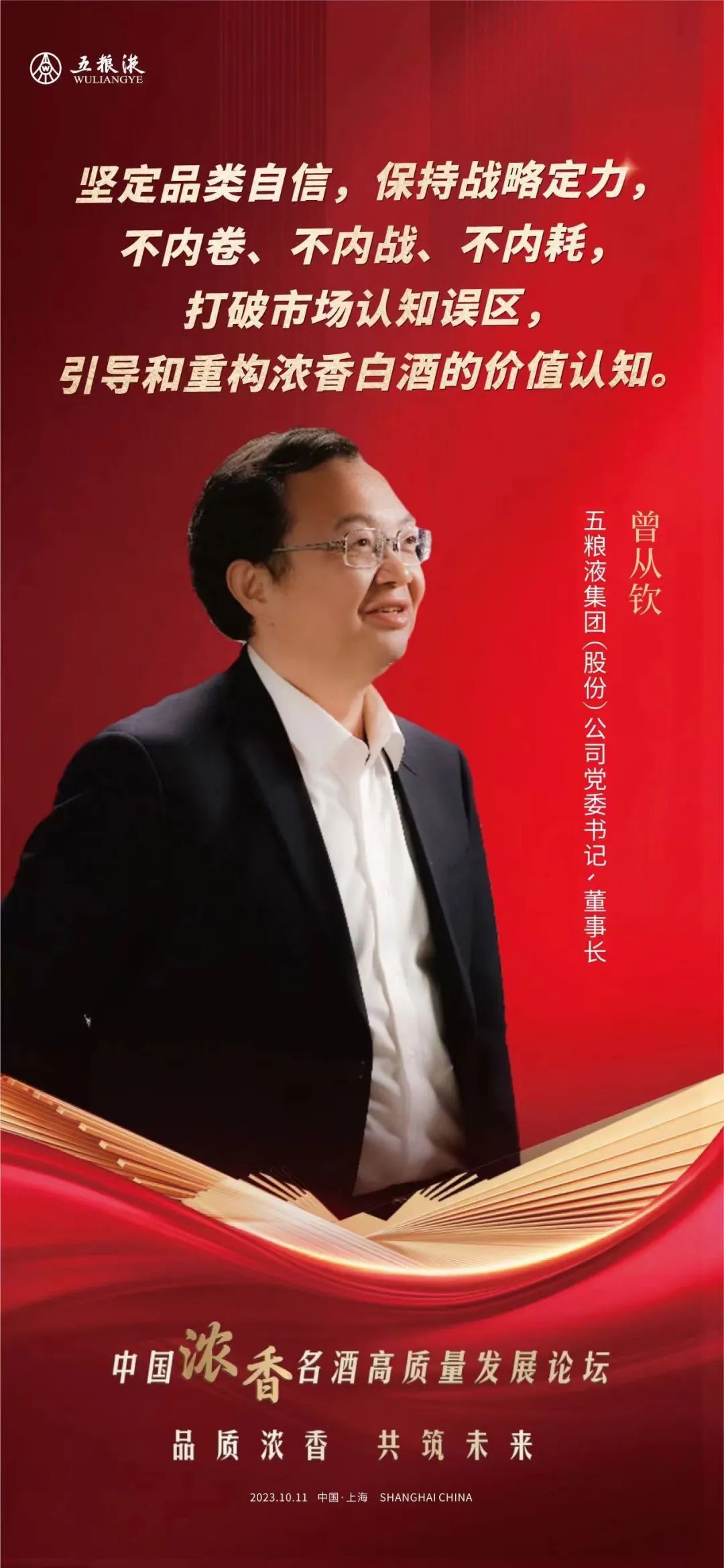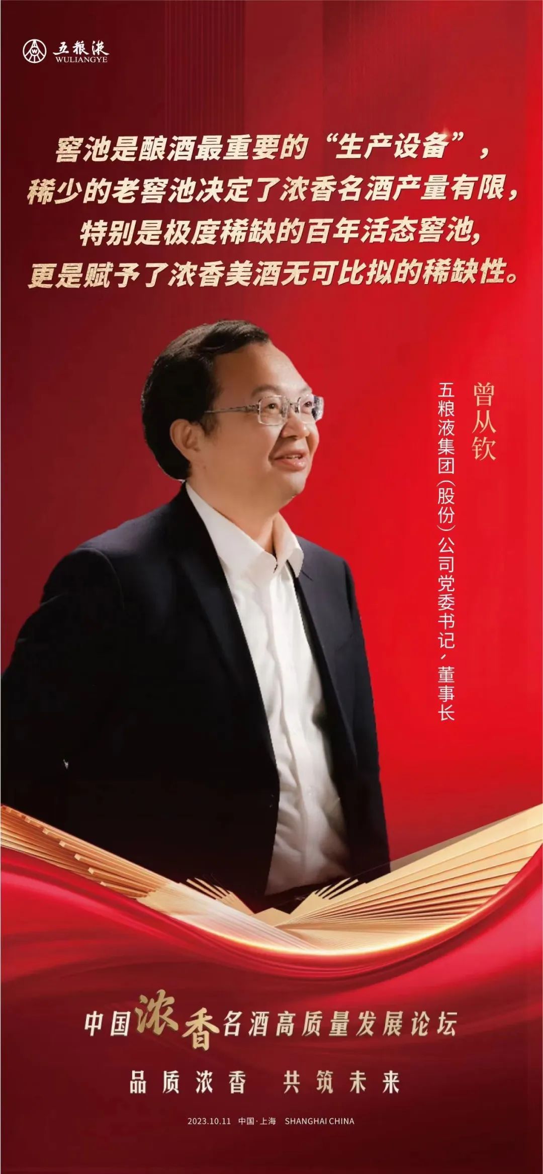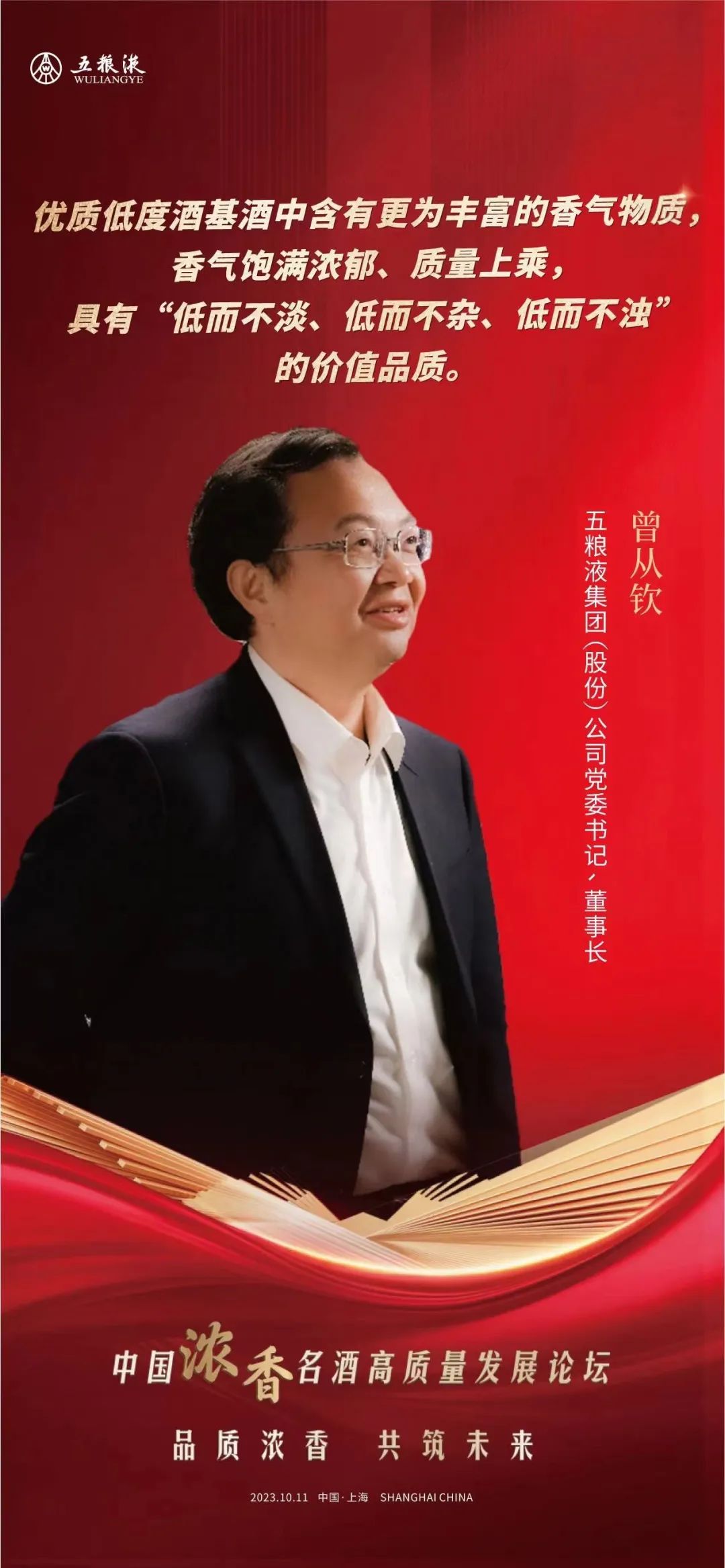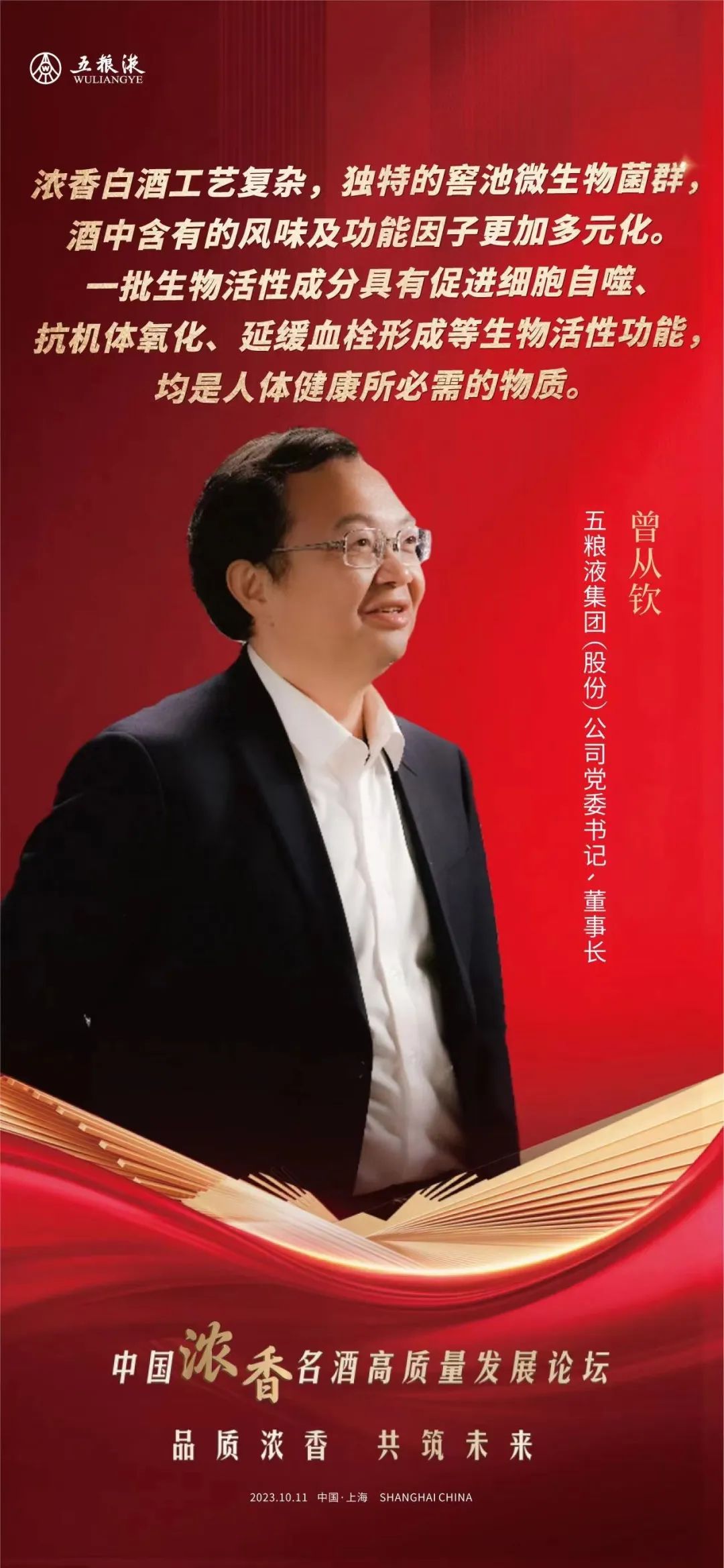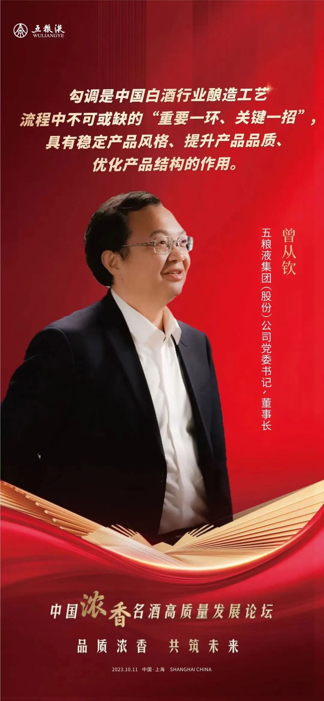 10月11日,由中国酒业协会主办的“中国浓香名酒高质量发展论坛”在上海举办。五粮液集团(股份)公司党委书记、董事长曾从钦出席并演讲。