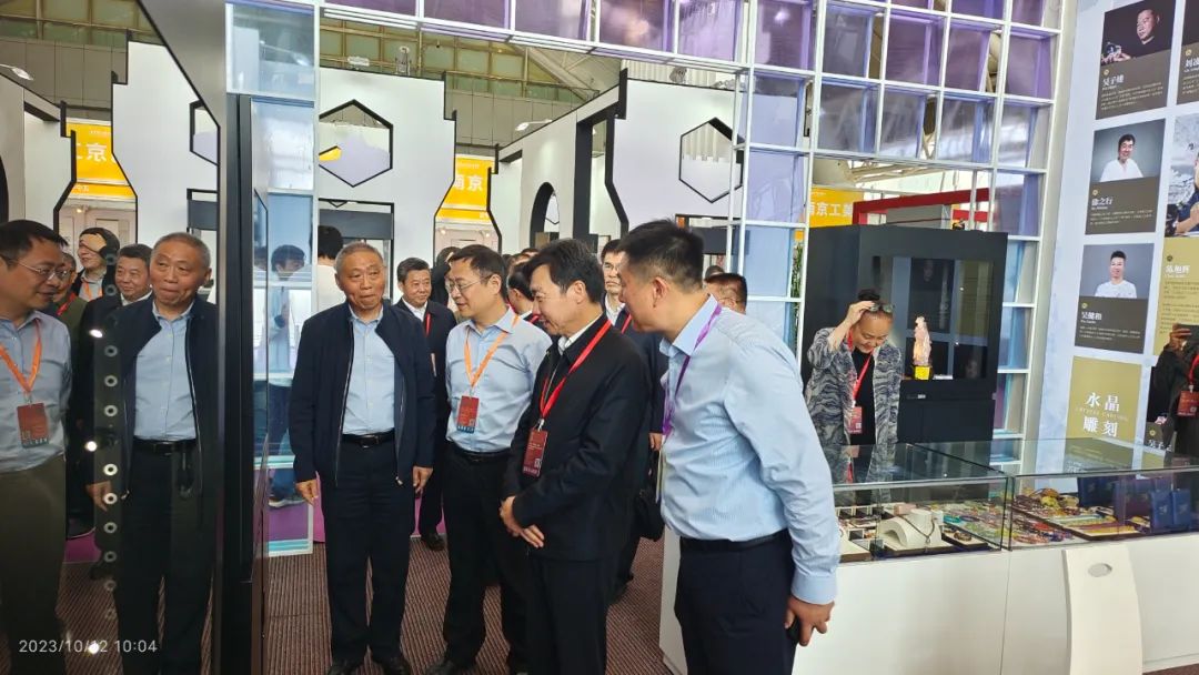 今日,江苏省水晶文化研究会组织会员单位共同参加于10月12日至10月15日为期4天由江苏省工艺美术行业协会、江苏省工艺美术学会在南京举办的第十四届江苏省工艺美术精品博览会。东海水晶雕刻精品在此次博览会上再次凭借优美的造型,精湛的雕刻技法,独特的文化内涵大放光彩,吸引了众多参加博览会人员的目光。
