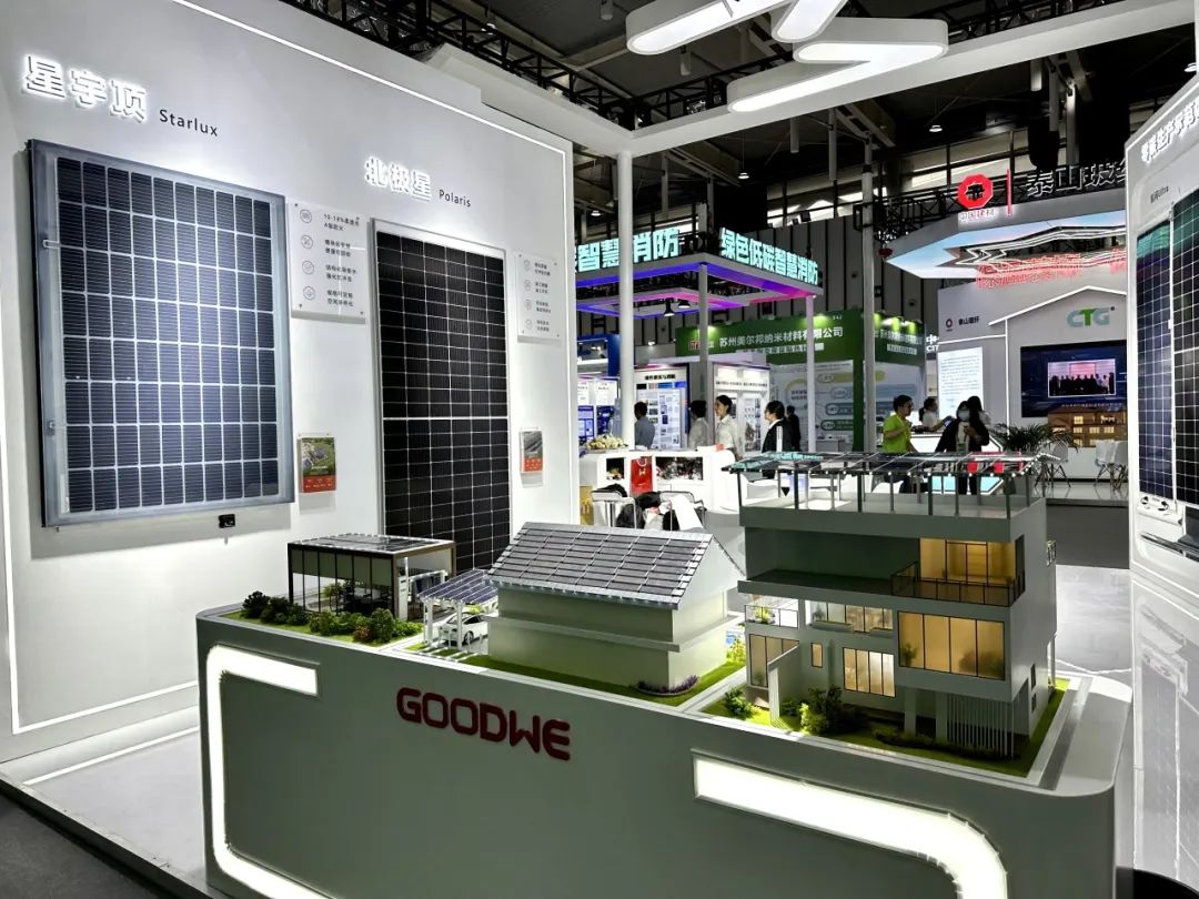 固德威首次参加江苏省级绿色建筑低碳会议,展出了以电力电子为核心的光电建筑整体解决方案,现场展示中搭建了零碳家庭完整生态系统,以及各类光电建材产品应用场景,重点展示集团在零碳建筑领域的系统布局。