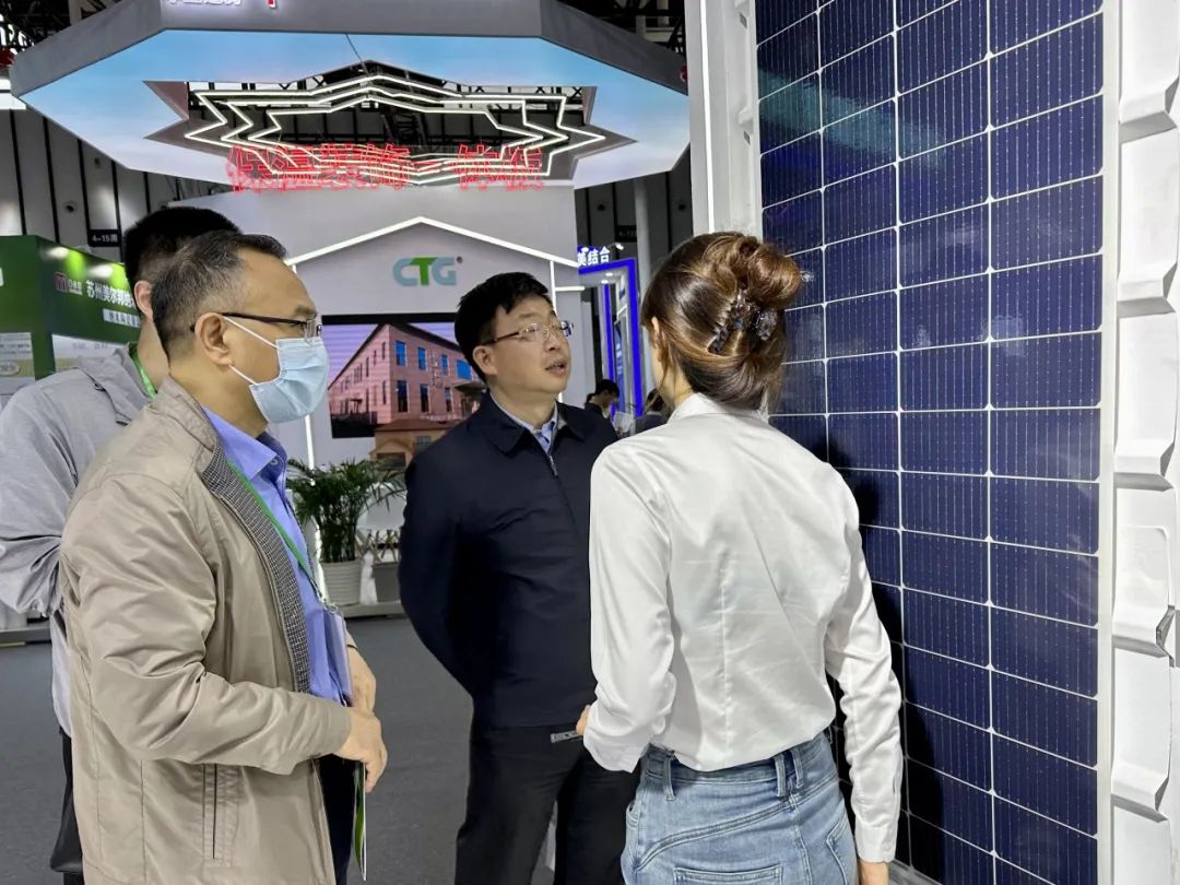 作为电力电子技术整体解决方案服务商,固德威从建筑光伏一体化的角度入手推进绿色低碳发展,在两天的展览中受到各界关注,在互相交流、研讨的同时更收获颇多指导性意见。江苏省住房和城乡建设厅与各市级住房和城乡建设局、江苏省建筑与历史文化研究会、江苏省建筑科学研究院、上海市建筑科学院、苏州市建筑科学研究院、中国建筑节能协会被动式建筑专委会、国际绿色建筑联盟等单位的重要领导、总工程师莅临固德威展位,对光电建材产品及整体解决方案给予肯定和鼓励;