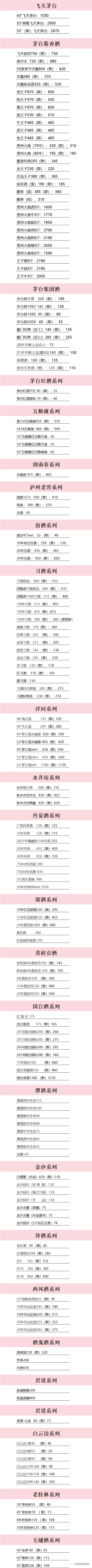 各大名酒参考价-10月12日