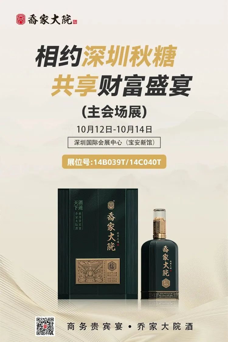 距离本届秋糖盛会结束还有两天,我们再次诚挚邀您来到深圳秋糖,走进乔家大院酒展厅,品鉴清香美酒,感受晋商文化,开启您的味觉与财富之旅。我们将扫榻相侯,期待与您携手共创辉煌!