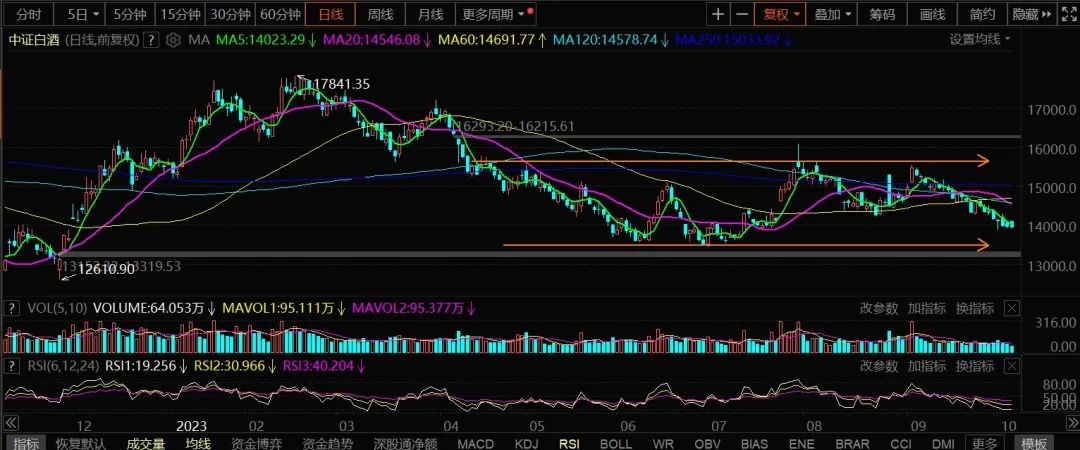 白酒指数短期处于震荡趋势。根据投资逻辑,应该在箱体下沿附近位置买入,在箱体上沿附近位置卖出。