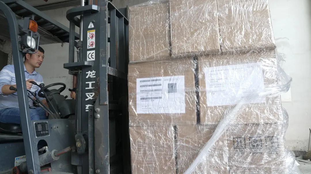 上午11时,从宁波港发出的集装箱缓缓驶入青田保税仓库,工作人员操作叉车对货车上的样品酒进行卸车入库,来自丽水海关的工作人员正在查验葡萄酒样品,核对包装、原产地等信息。
