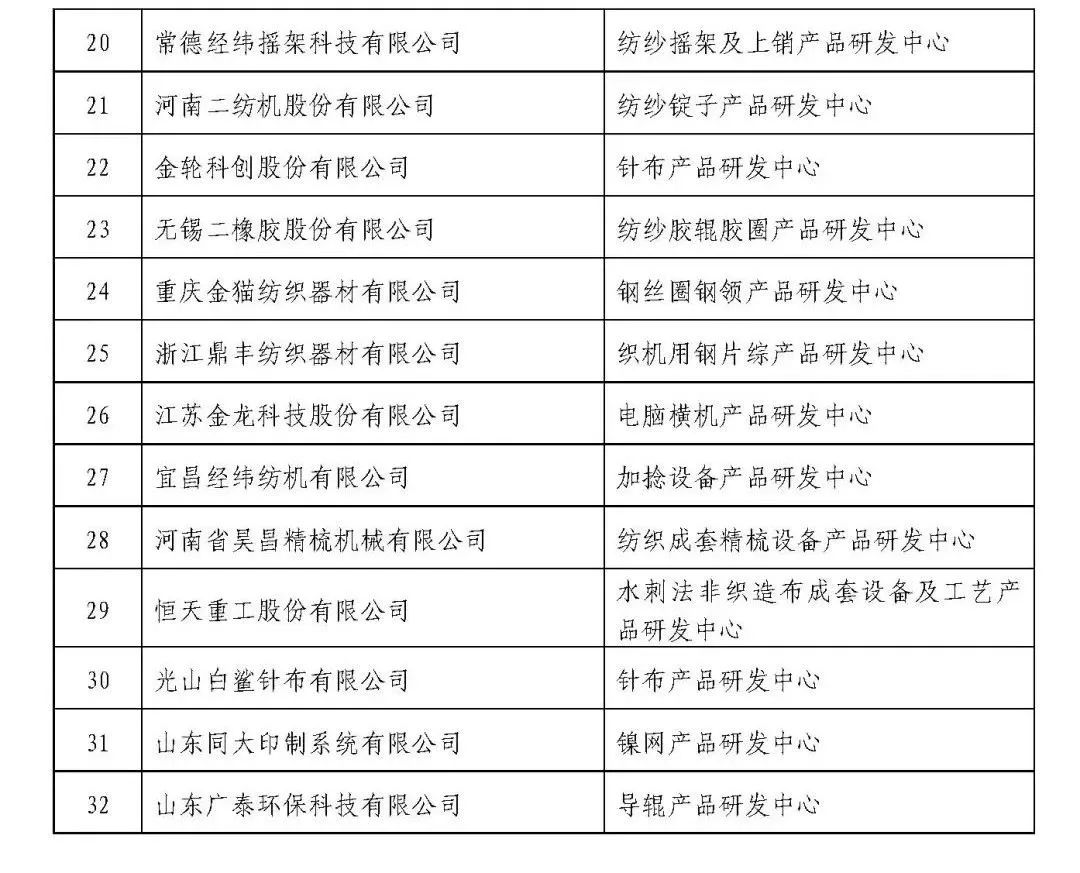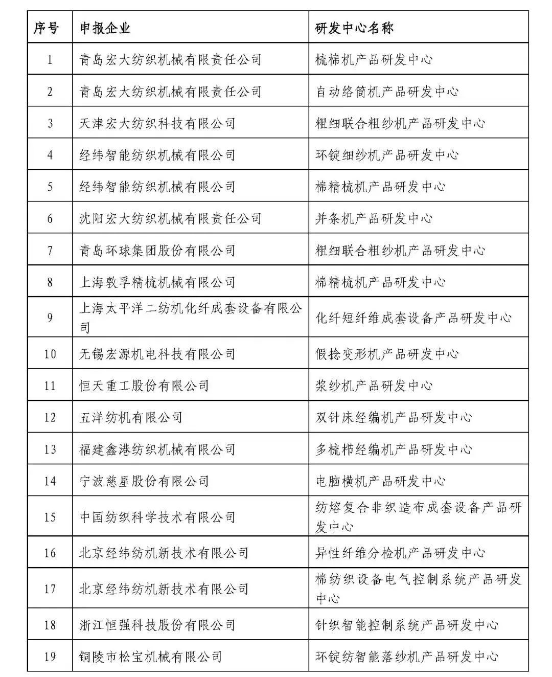日前,中国纺织机械协会发布公告,经对提交申请的研发中心复评资料进行审核,同意青岛宏大纺织机械有限责任公司等三十二家企业“中国纺织机械行业产品研发中心”继续有效。