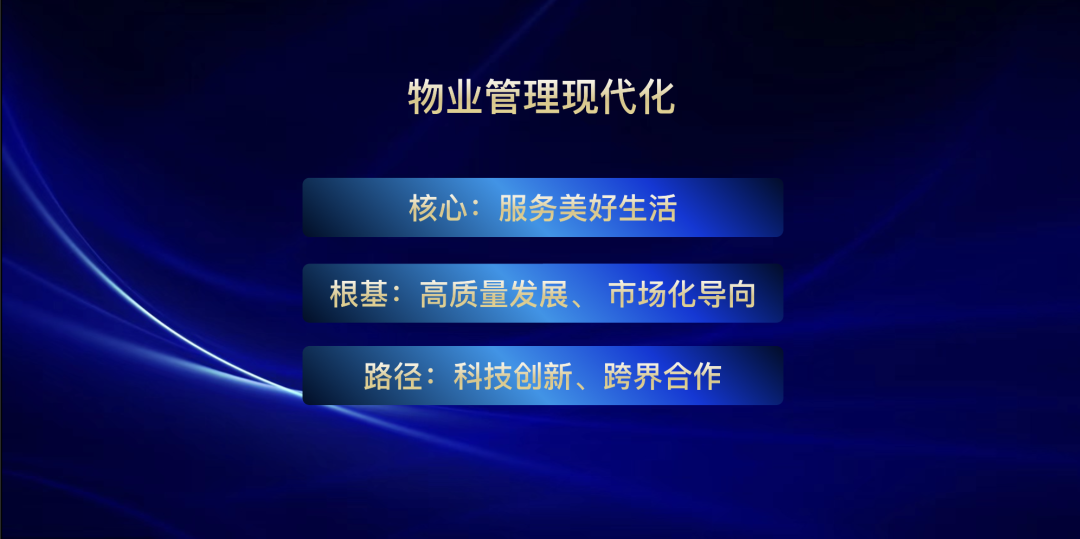 什么是物业管理现代化,我们提取了5个基础内涵:服务美好生活、高质量发展、市场化导向、科技创新、跨界合作。