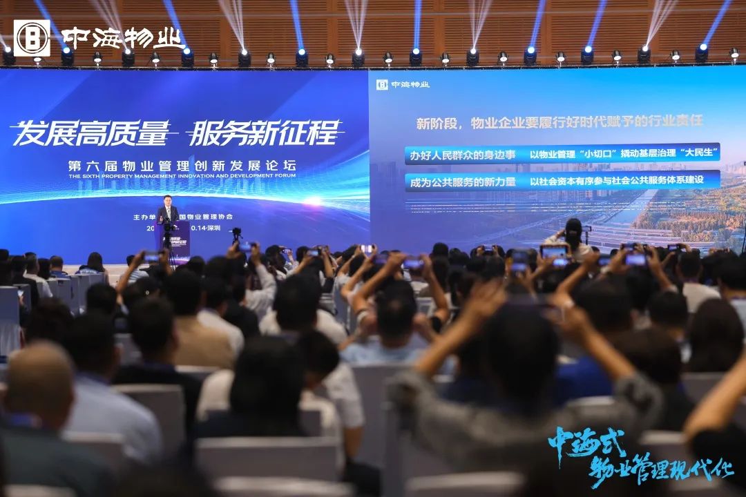 2023年10月12日,中海集团董事、中海物业董事局主席张贵清以《新阶段 新目标 新发展》为题,在“发展高质量,服务新征程”第六届中国物业管理创新发展论坛上发表主题演讲。