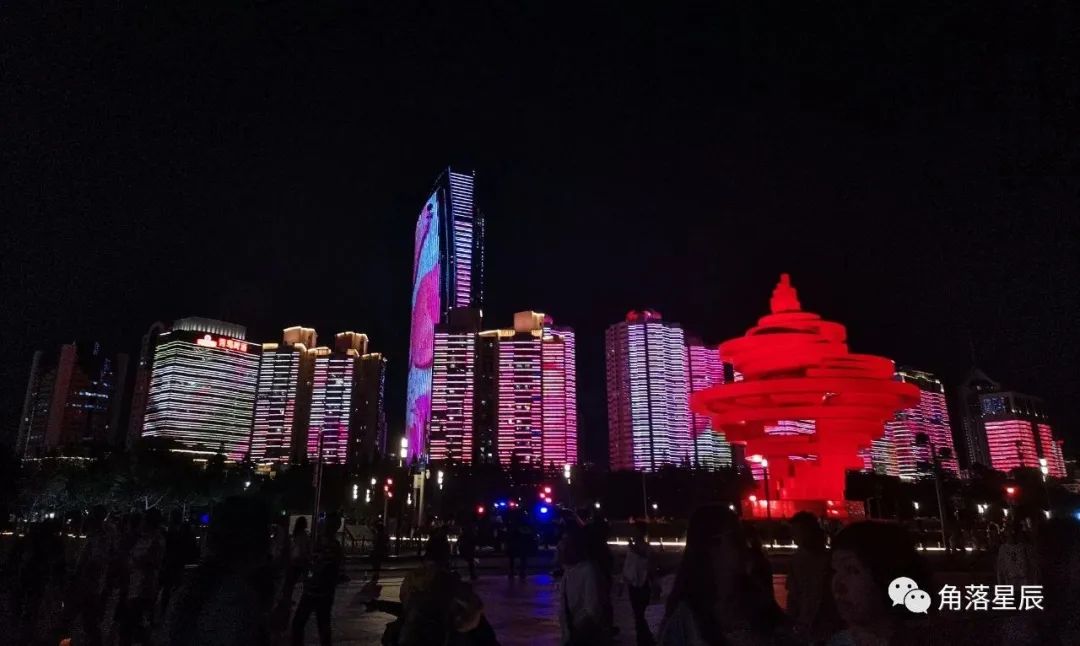 路过五四广场,看到了和白天不一样的热闹,打卡青岛标志性建筑,远观奥帆的夜,伴随着15分钟灯光秀,氛围感拉满。