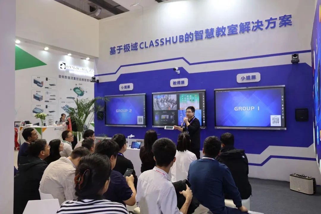 展会首日,极域展位人气满满,基于极域CLASSHUB的极域智慧教室解决方案宣讲,吸引了众多参展嘉宾驻足聆听和咨询,极域产品完善的功能设计和出色的性能获得嘉宾们一直认可。