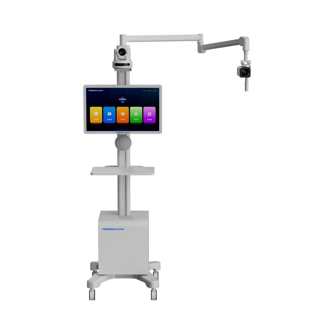 集实训触控主机、全景摄像机、特写摄像机、万向臂、箱体、移动万向轮于一体,采用高度集成化设计,多功能万向臂可折叠收缩、自行穿线,支持水平360 度旋转,多方位旋转调节,便于高清摄像机细节画面的移动拍摄,并可实现教学实践内容的对比展示、实训教学过程的录制直播、教学资源的云端存储和点播回看;并配套充电式蓄电池,隐藏于推车底部的箱体中,让推车脱离电源线的束缚,充分满足长时间移动实训的教学需求。