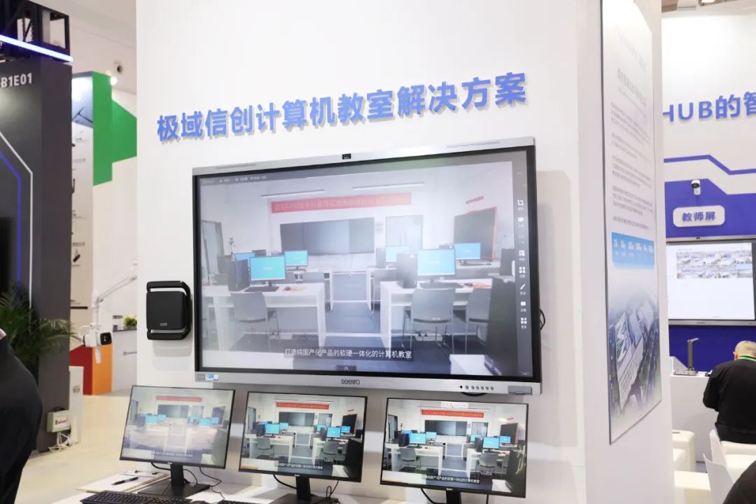 此次高博会,极域携全新升级的“智慧教室司令官”——极域CLASSHUB和创新实训产品——极域移动示教推车精彩亮相,展示极域在高教智慧教室整体建设方案和教育信创应用创新的最新成果。