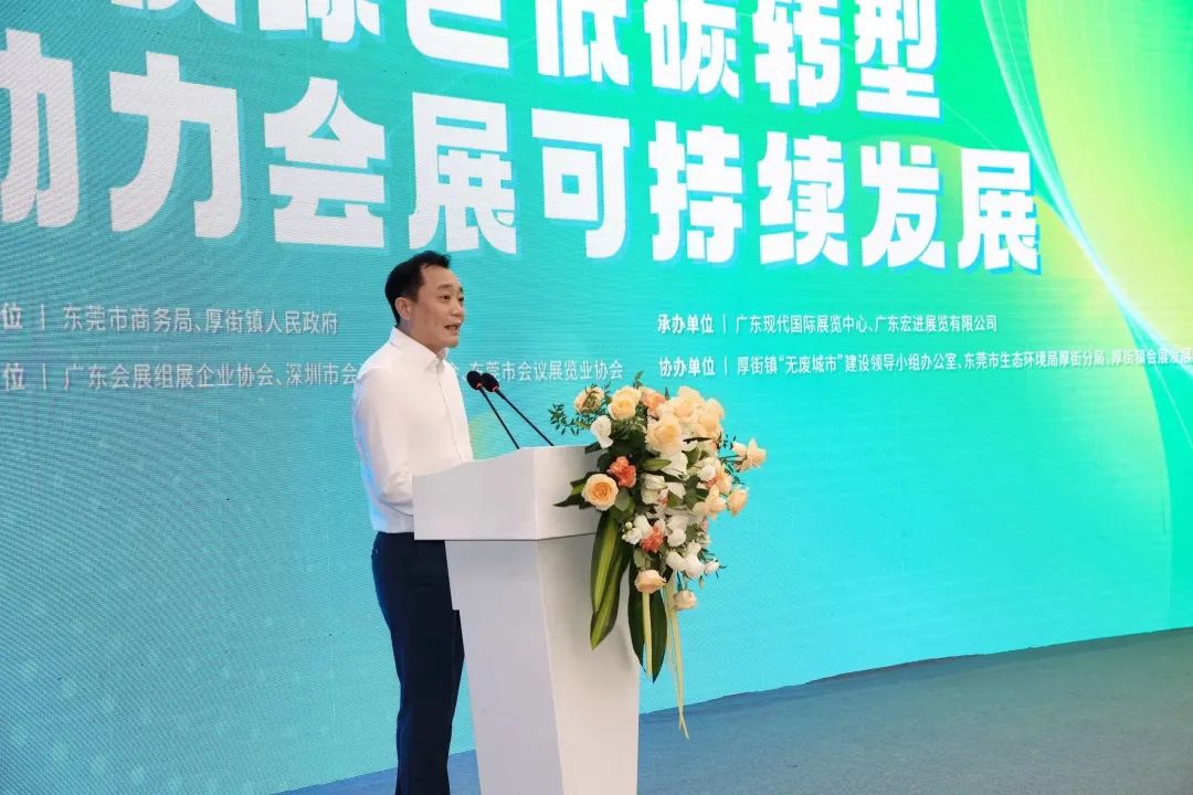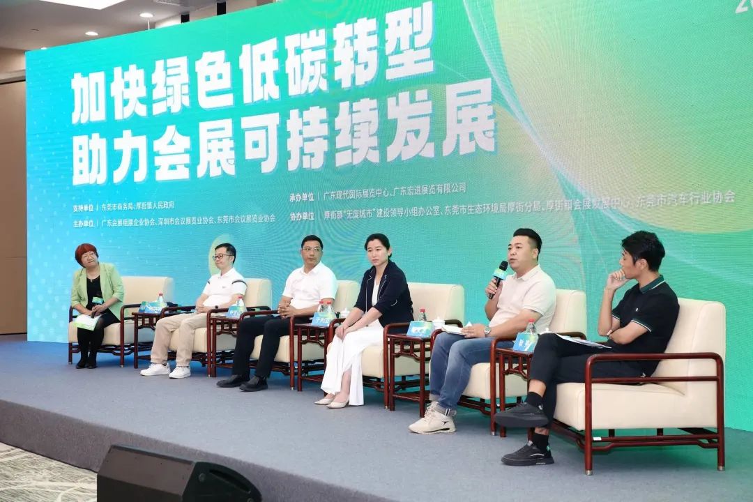 2023年10月12日,由东莞市商务局、厚街镇人民政府支持,广东会展组展企业协会、深圳市会议展览业协会、东莞市会议展览业协会联合主办,广东现代国际展览中心、广东宏进展览有限公司承办,厚街镇“无废城市”建设领导小组办公室、东莞市生态环境局厚街分局、厚街镇会展发展中心、东莞市汽车行业协会协办的“绿色会展论坛”在东莞成功举办。