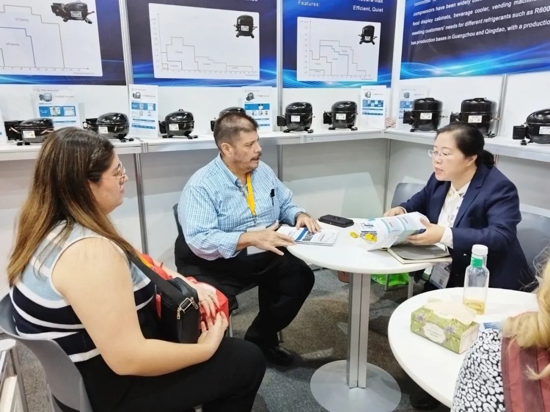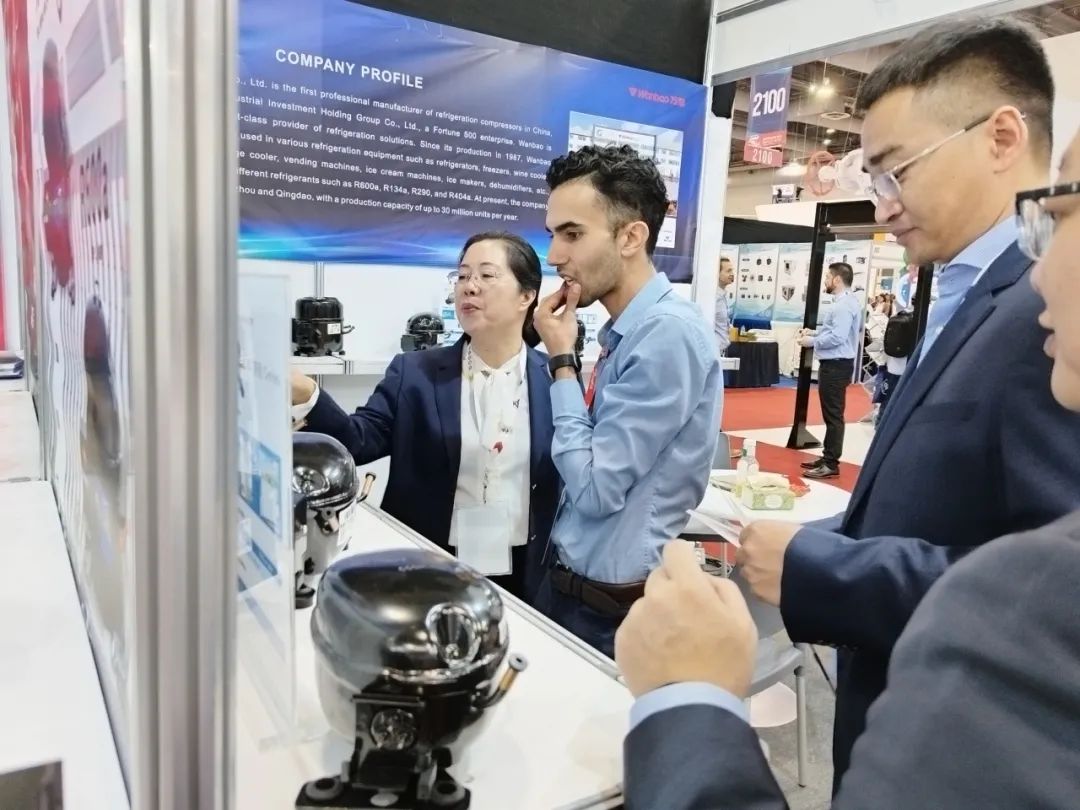其中,备受关注的VETW高效系列产品,覆盖了7.0cc-11.0cc等主流排量需求,具备高效率(最高COP2.15)和超静音特点(最低28分贝),是目前市场上最高能效冰箱产品的新选择。展会期间,万宝压缩机与60多家客户建立了联系方式,将积极推进合作事宜,为后续公司业务发展打下基础。