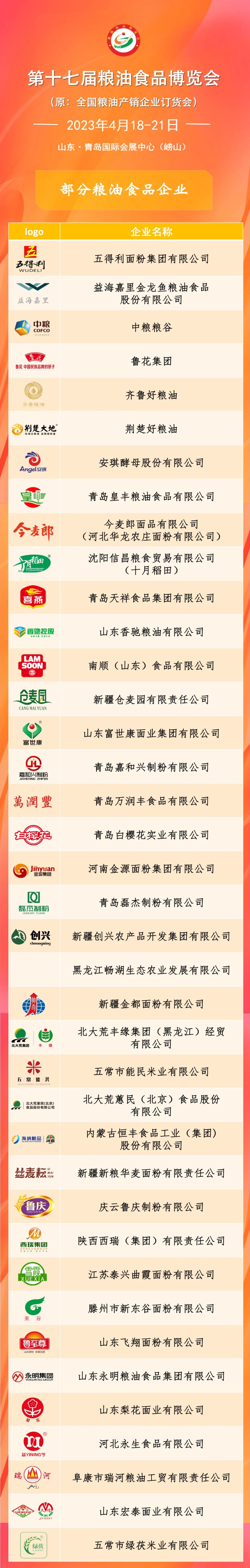 第十七届粮油食品博览会(粮博会)将于2023年4月18日-21日在山东青岛国际会展中心盛大开幕。